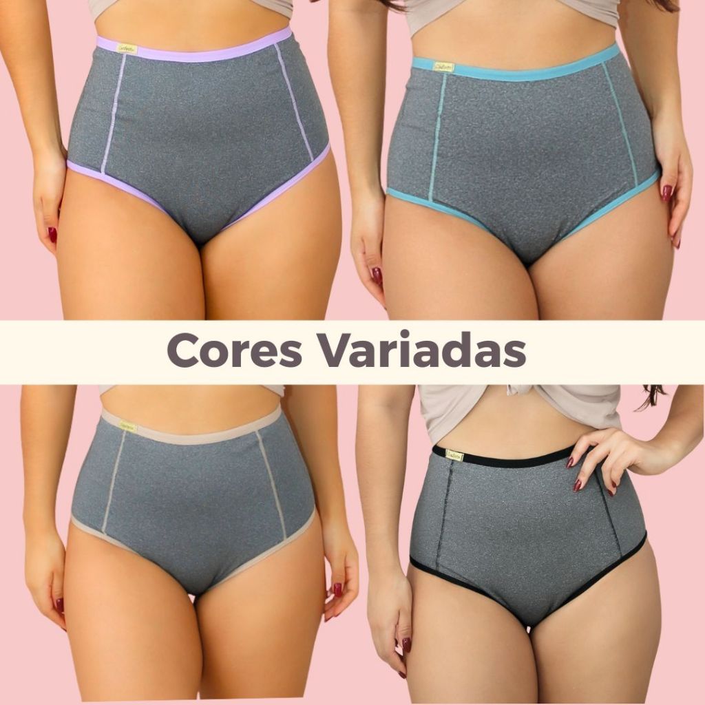 Kit Calcinha Cinta Cintura Alta Cós Alto Duplo Tanga Plus Size Modeladora Afina Cintura Pós Parto