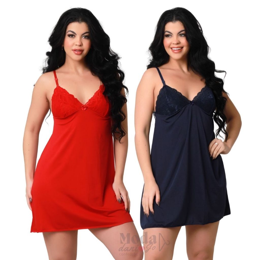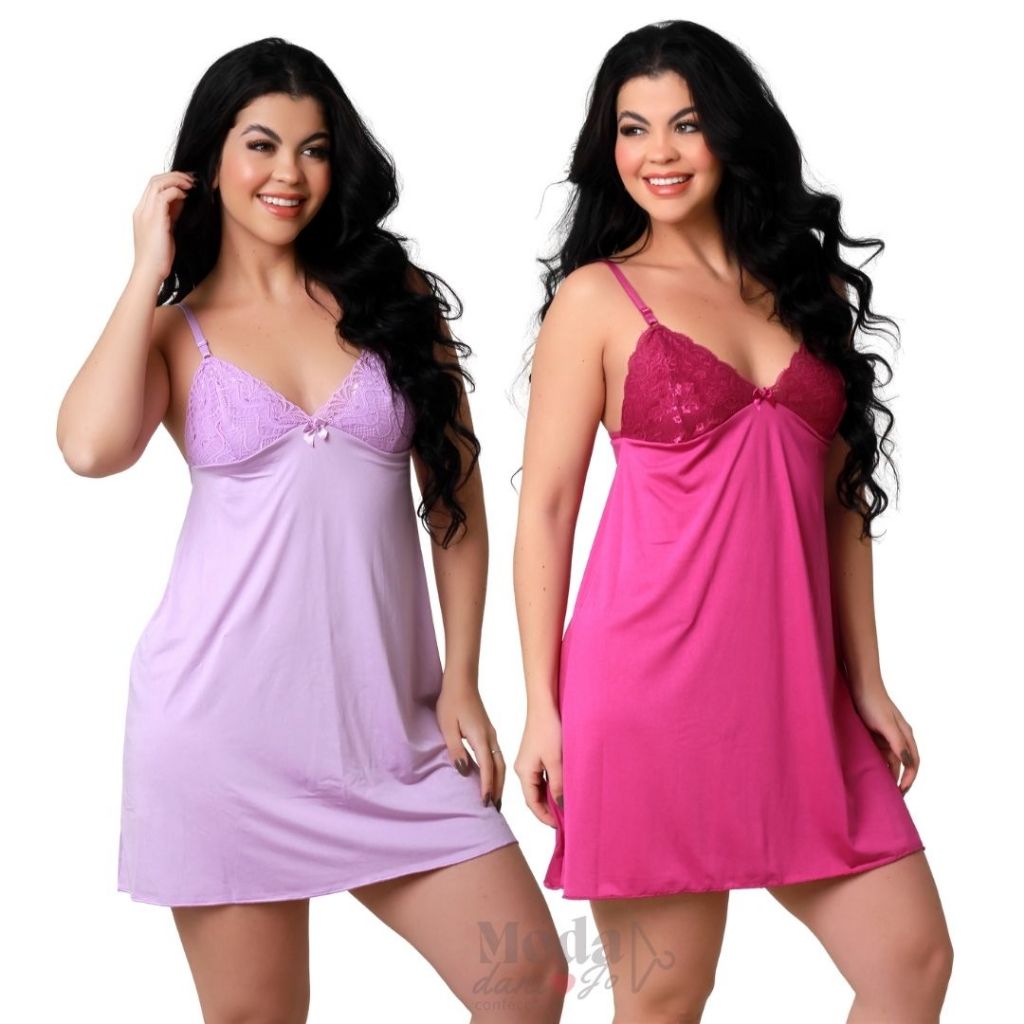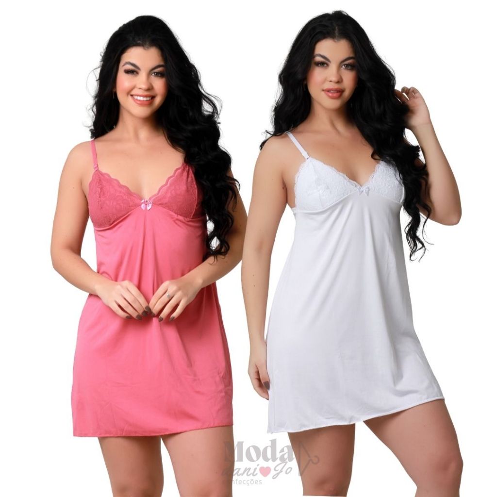 Kit 2 Camisola Sexy Com Renda Sobreposta Sem Bojo Básica Conforto Rendada Sensual Curta Para Dormir