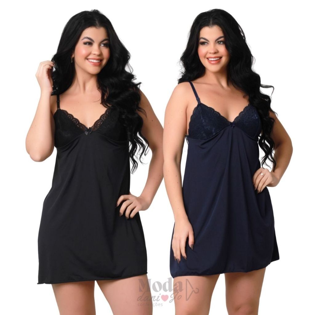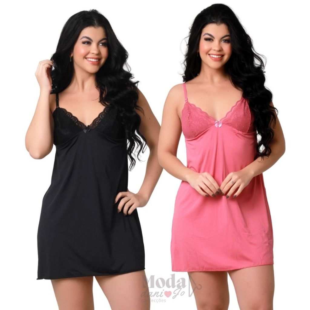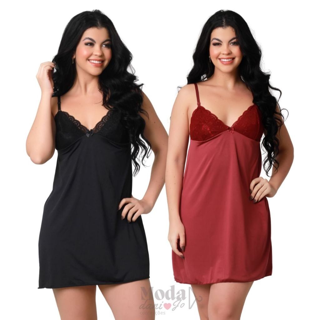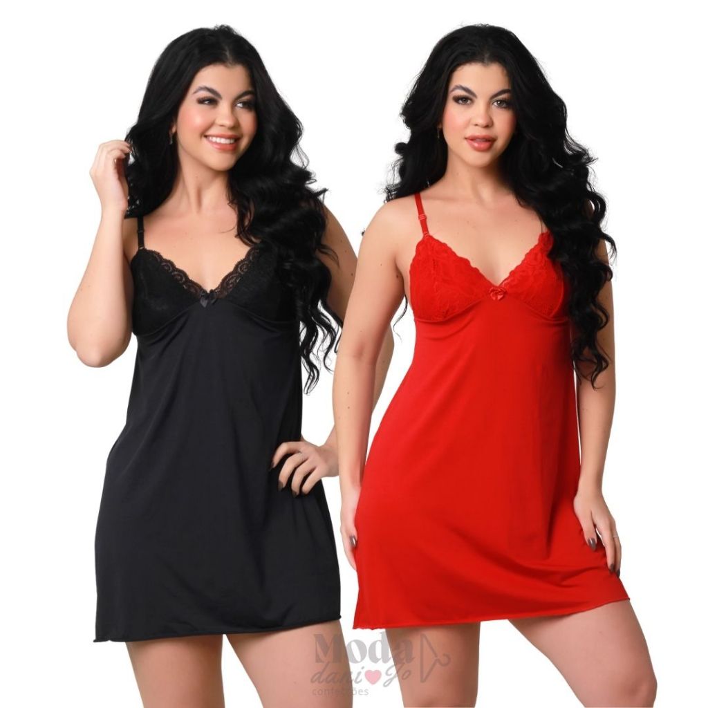 Kit 2 Camisola Sexy Com Renda Sobreposta Sem Bojo Básica Conforto Rendada Sensual Curta Para Dormir
