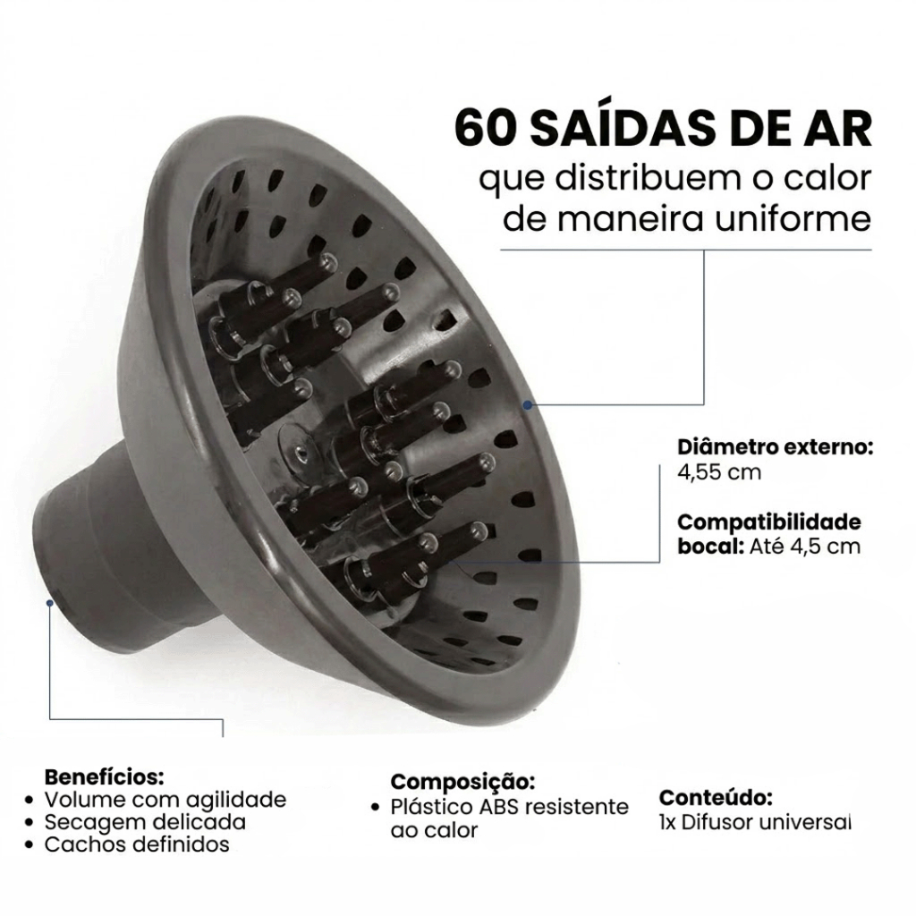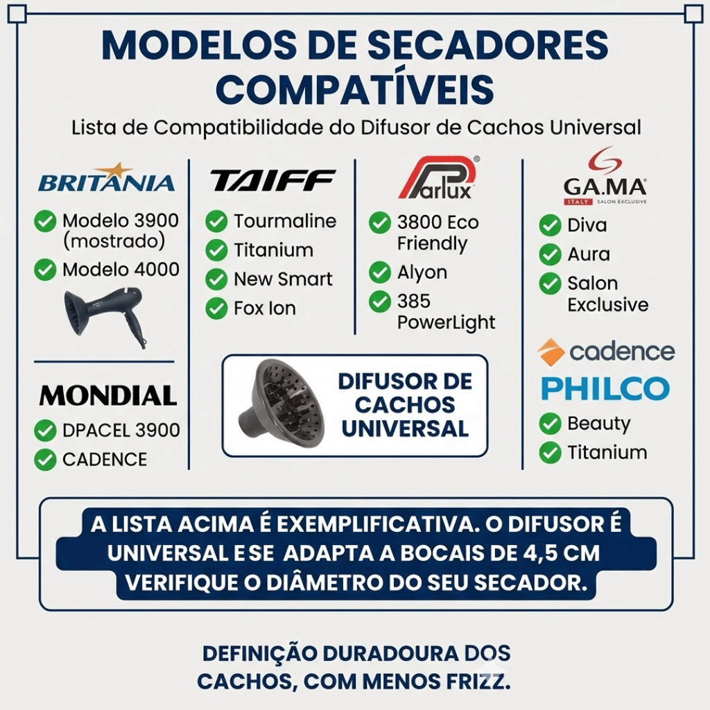 Difusor Cachos Universal Para Secador Taiff Vários Modelos