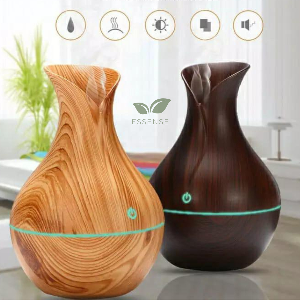 Umidificador Aromatizador Difusor de Ar Ultrassônico LED USB Cor Madeira Marrom Claro Escuro