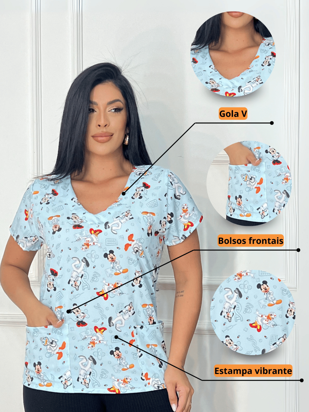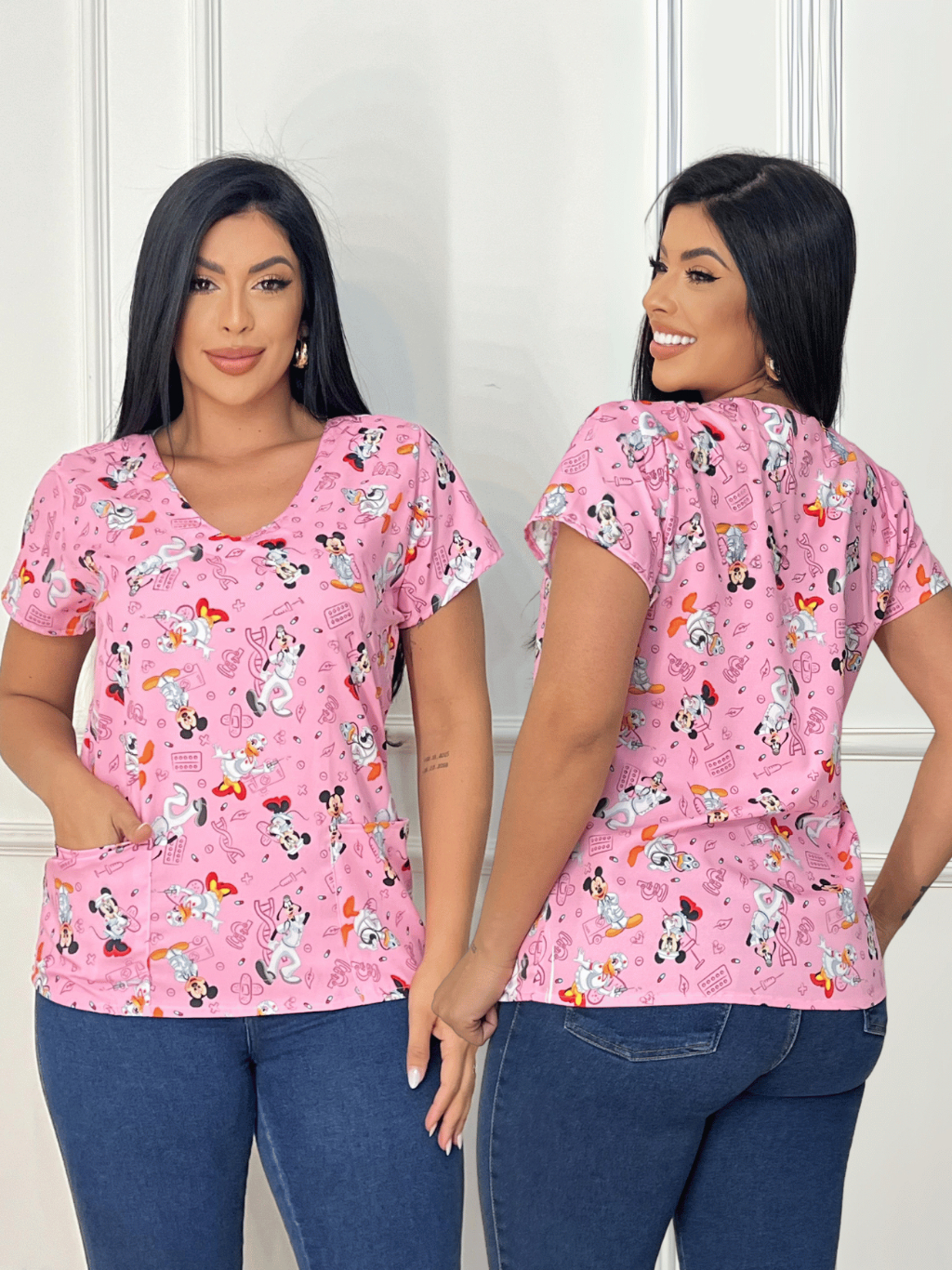 Scrubs Bata Estampada Área da Saúde - Turma Do Mickey