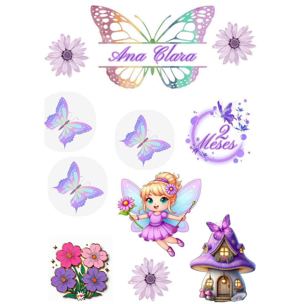 TOPPER ( Topo de bolo JARDIM DAS BORBOLETAS personalizado para festa )
