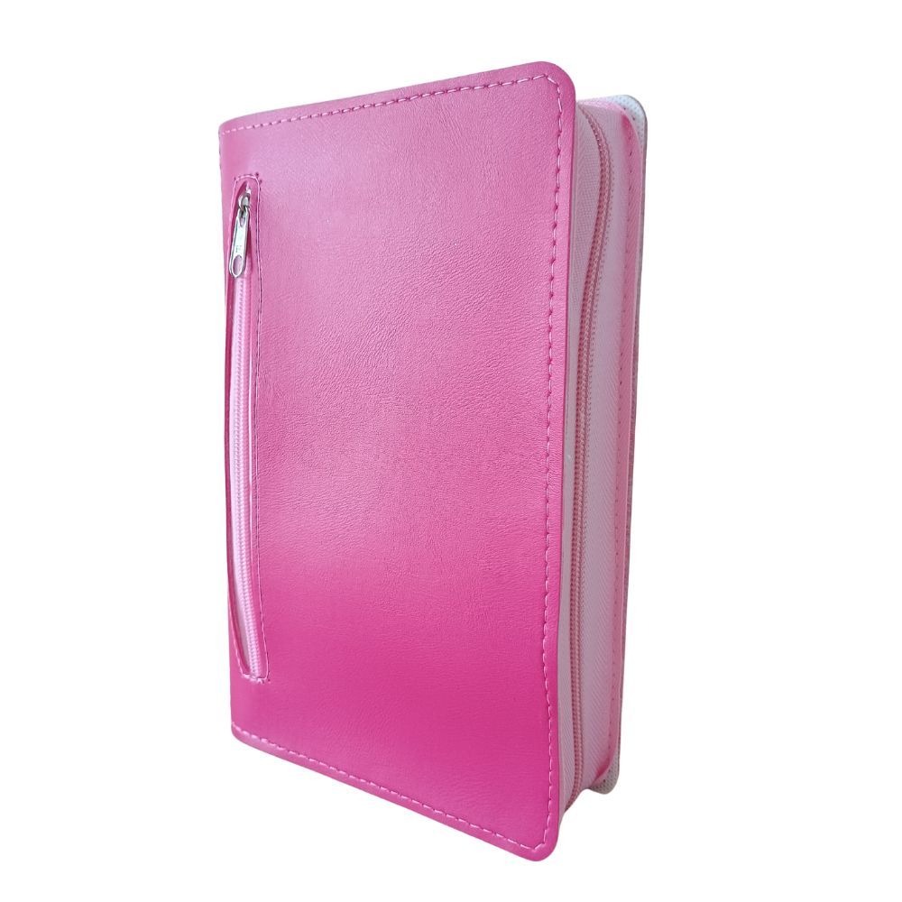 Capa para Bíblia Lisa sem Gravação ou Escrita com Zíper e Bolso Externo - Rosa ou Preta