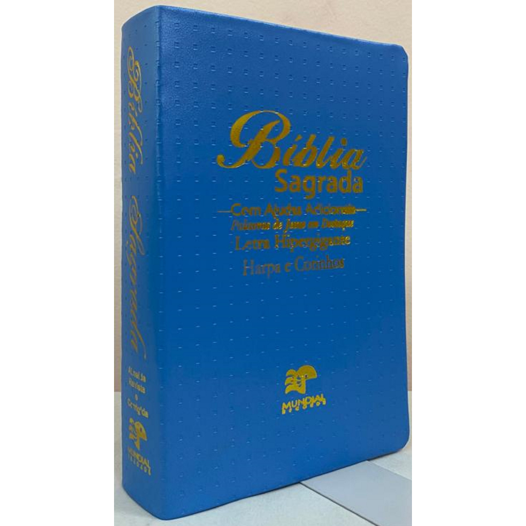 Bíblia letra hipergigante com harpa - capa luxo azul serenity