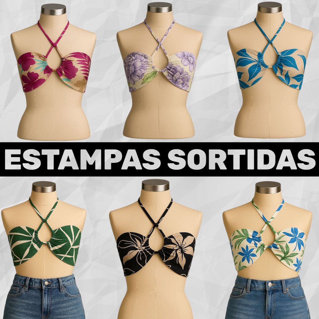 Kit 3 Peças Top Faixa Amarrações 7 em 1 Suplex Estampado Floral Cropped Verão Moda Praia Dia a Dia Várias estampas