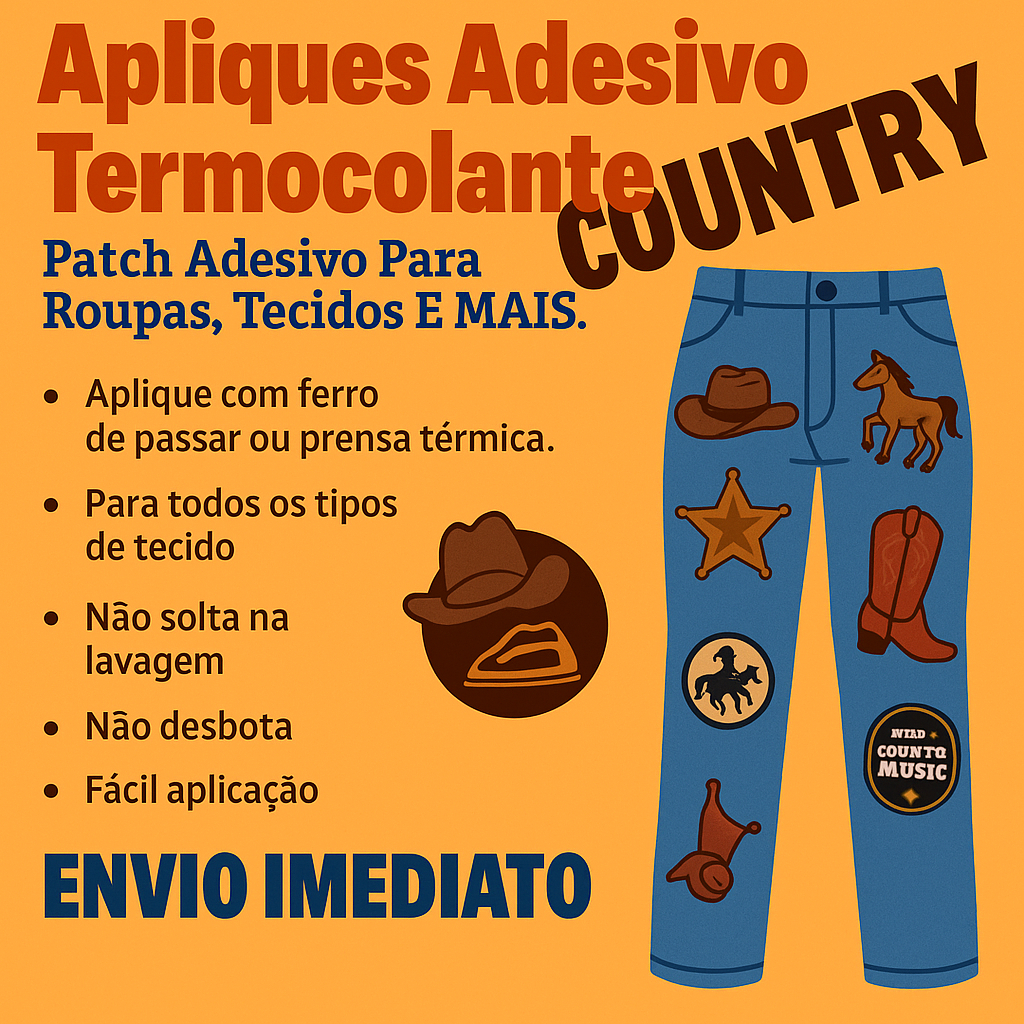 Adesivo termocolante DTF Country termocolante para personalizar calça Jaqueta Camisa Pronto p Estampar envio imediato