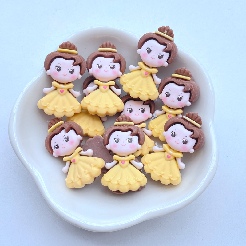 10 Peças Desenho animado Disney Princess Princess Girl DIY Cream Cola Acessórios Decoração Creme Cola Manga Material de Bricolagem Material de Bricolagem Resina para Grampos de Cabelo Acessórios