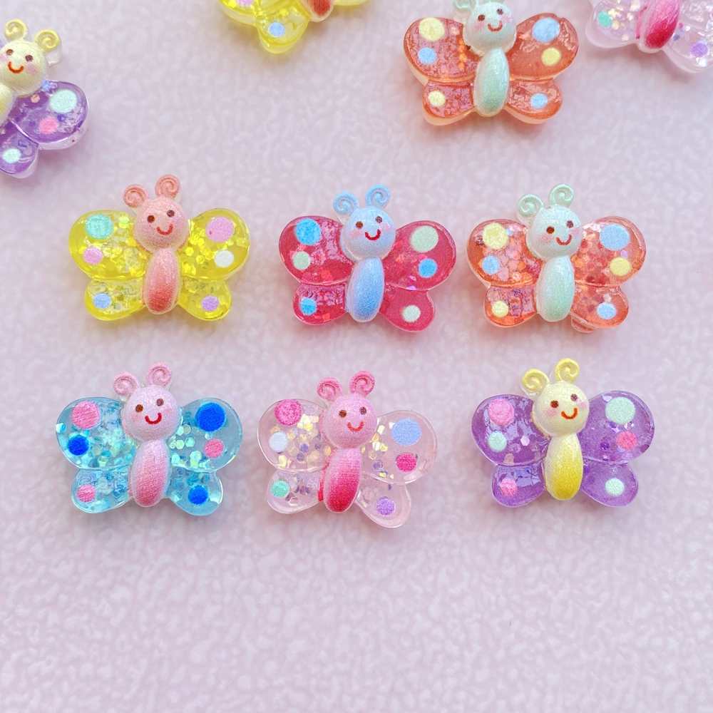 Marca Nova 10 Peças / Batch Cute Cartoon Série Borboleta Colorida Brilhante Resina Artesanato de Estátua Flat Back Convex Round