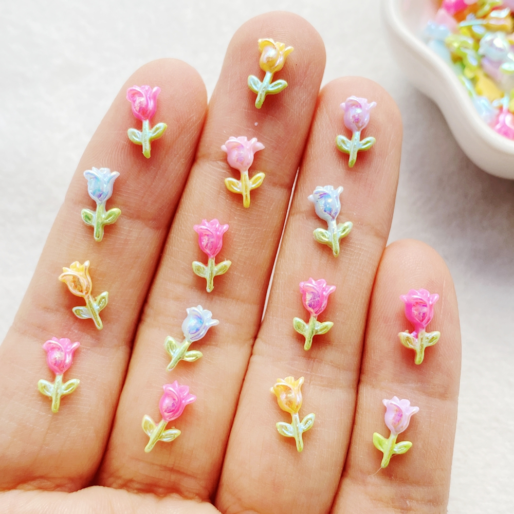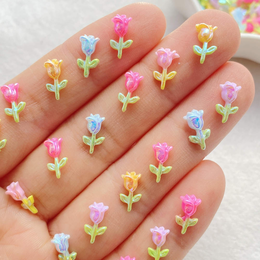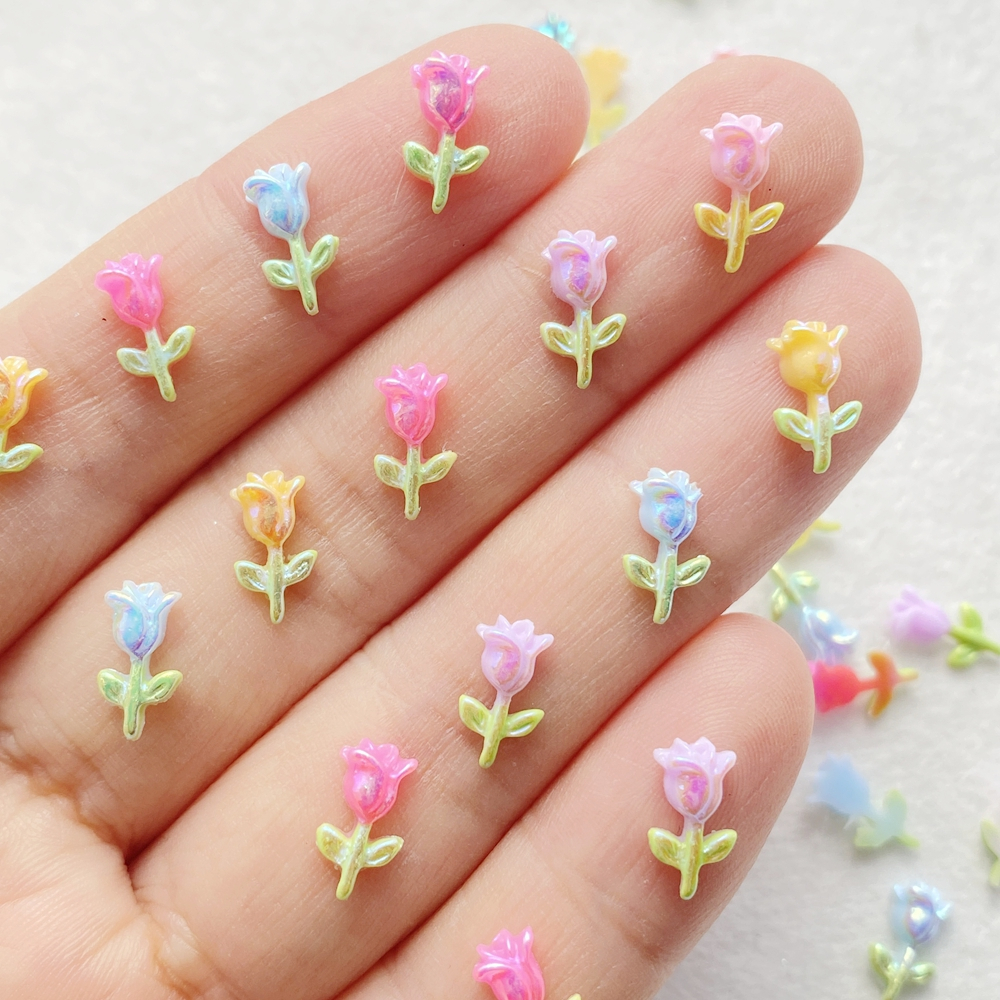 50 Peças Vibrantes Adoráveis Buquê De Rosas De Resina Amuletos De Unhas De Cristal-Apliques De Strass Multicoloridos Com