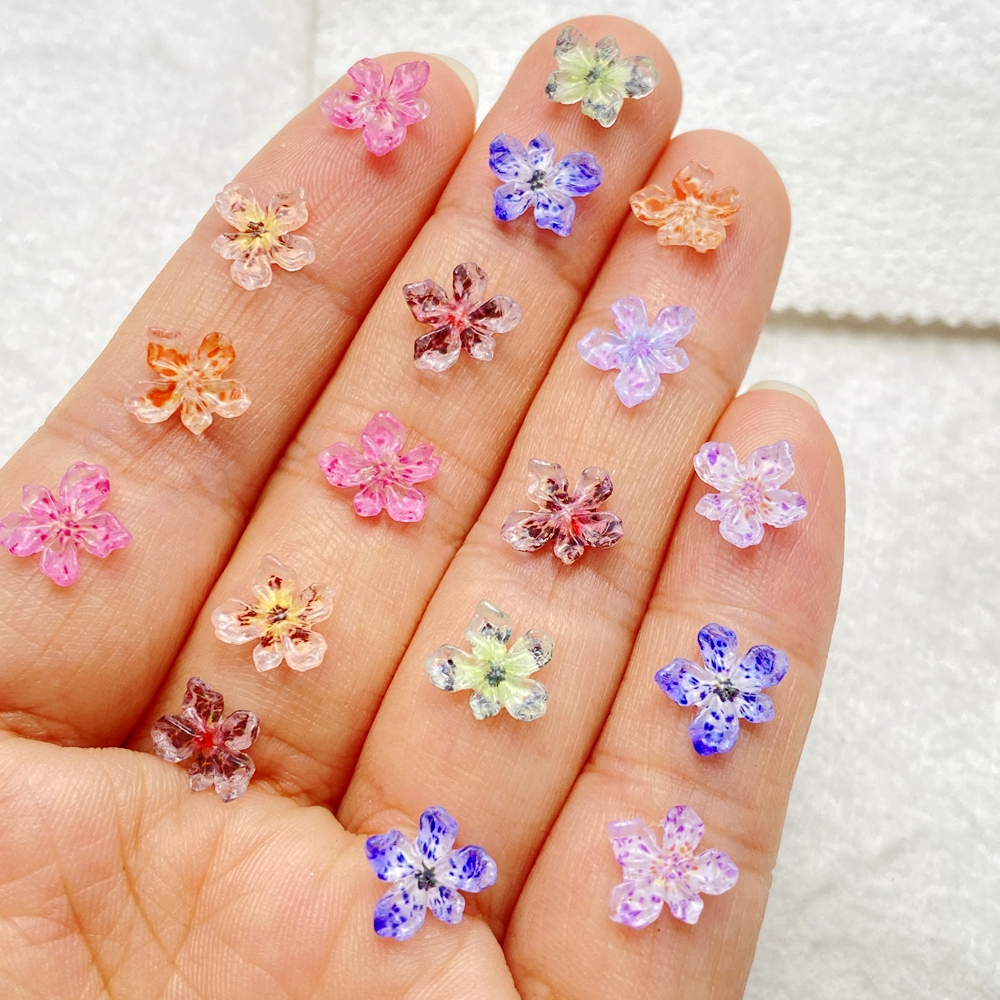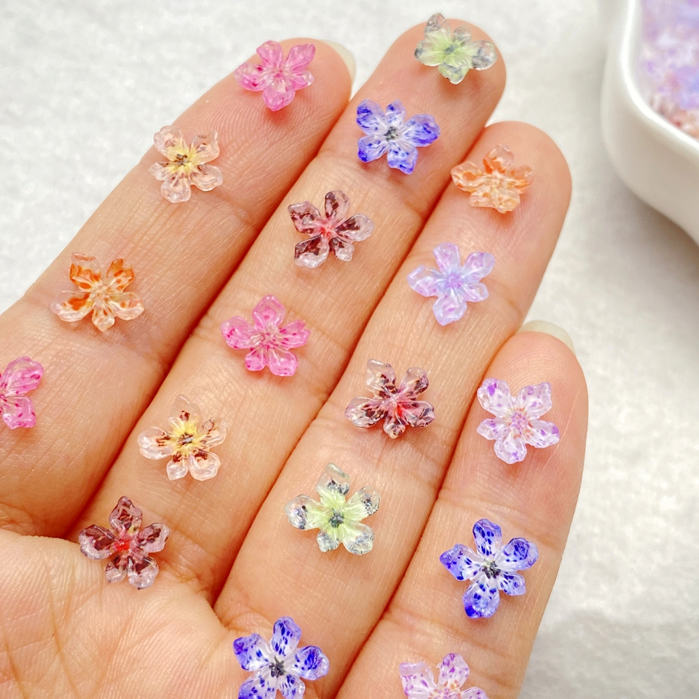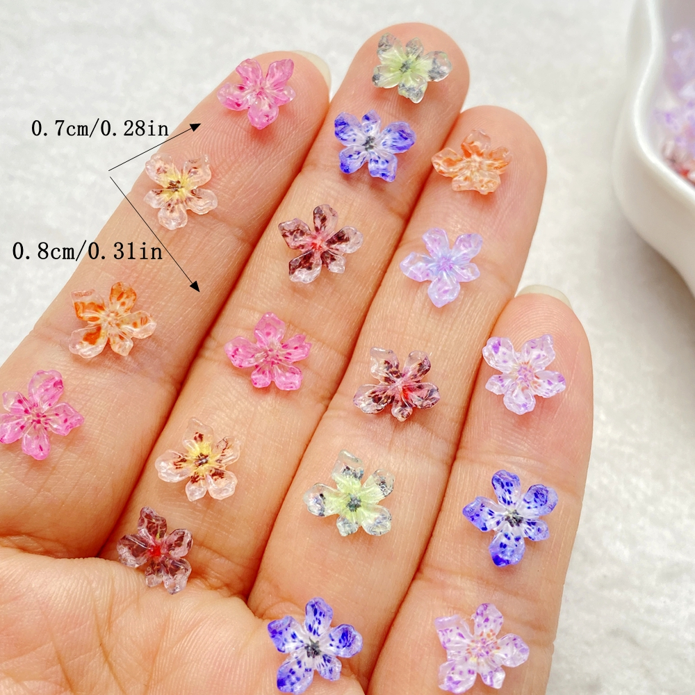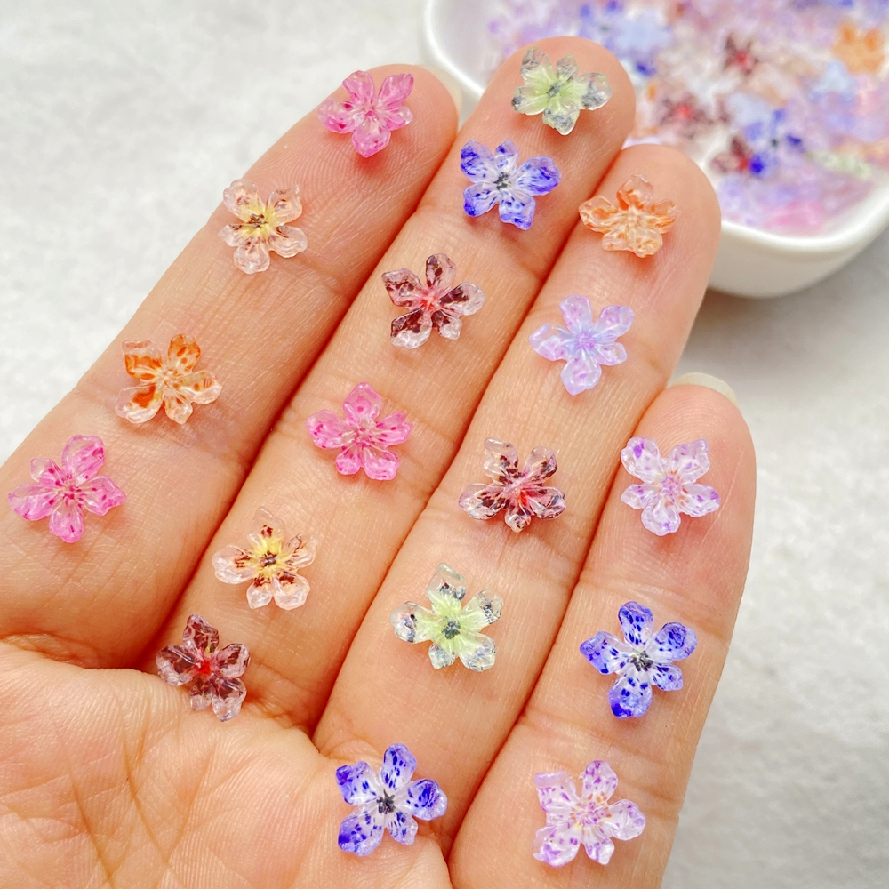 50 Peças De Resina De Unhas Mistas mini Flor De Cerejeira Colorida Decorações DIY Artesanato Decoração Joias 3D