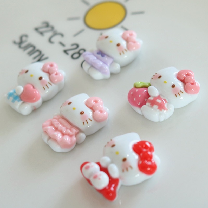 10 peças/Set arco dos desenhos animados gato fundo plano DIY acessórios de resina decoração, acessórios de grampo de cab