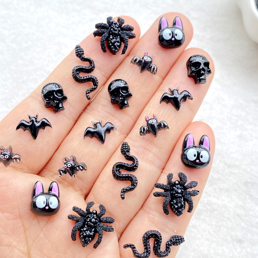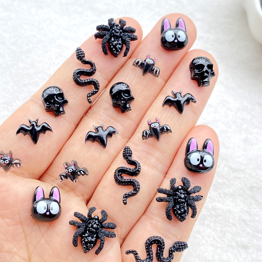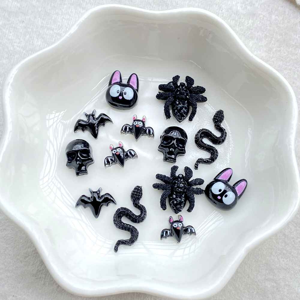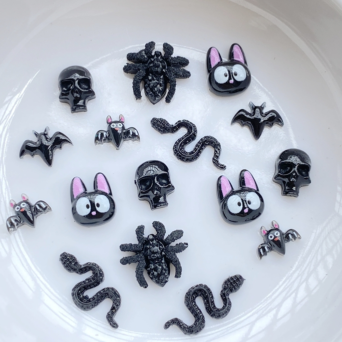 50 peças novo desenho animado de resina fofo aranha de Halloween, morcego, caveira, gato preto, morcego, parte traseira