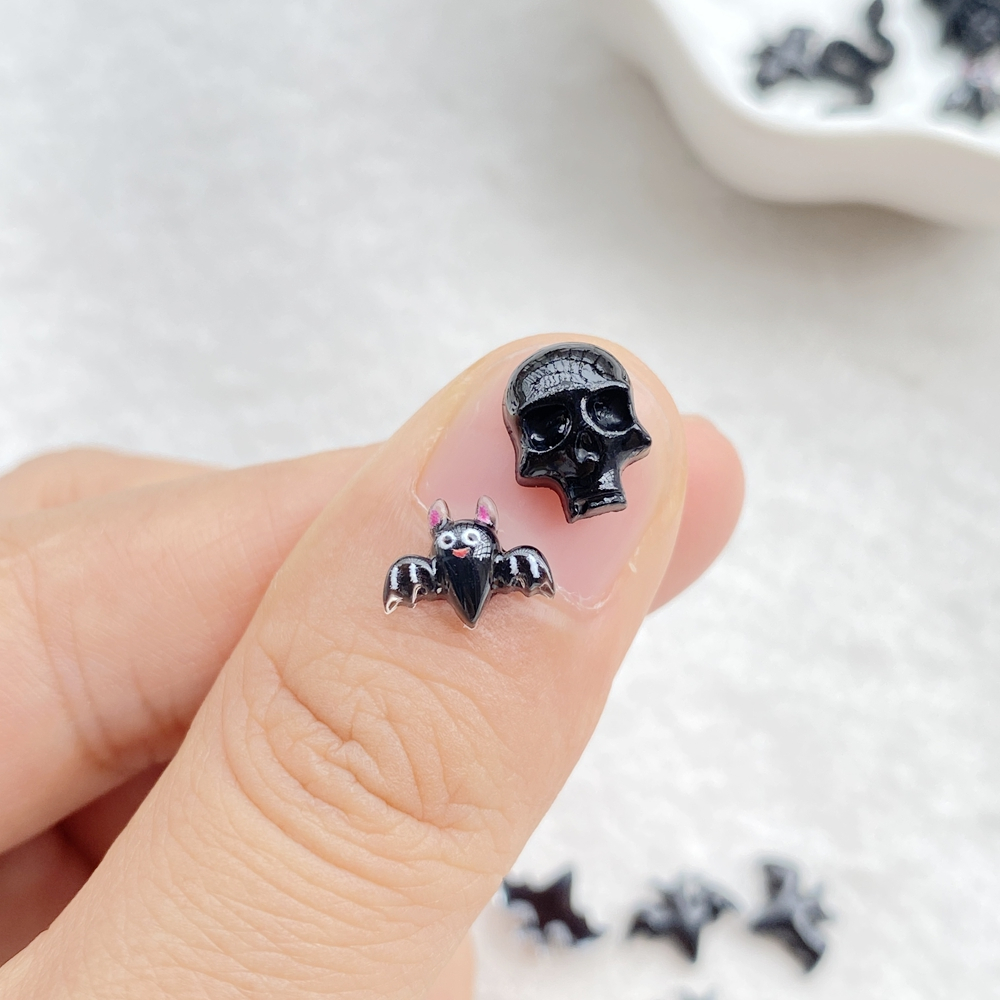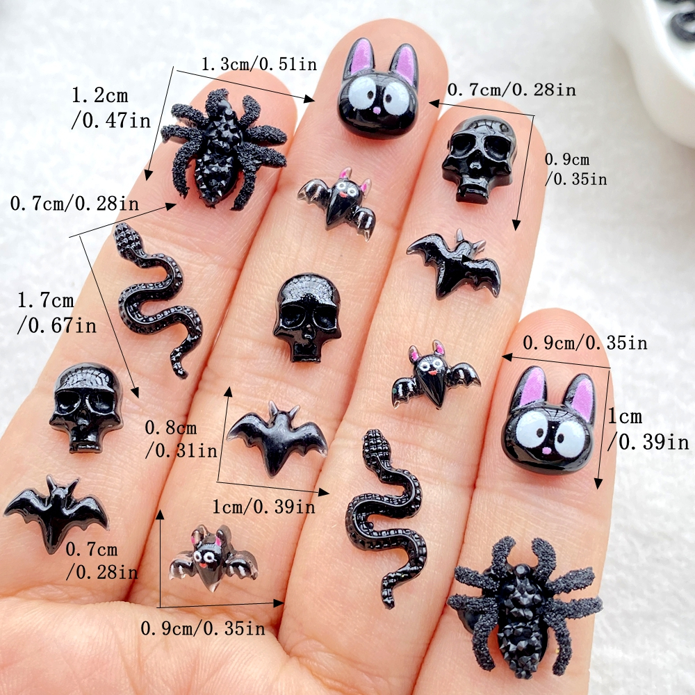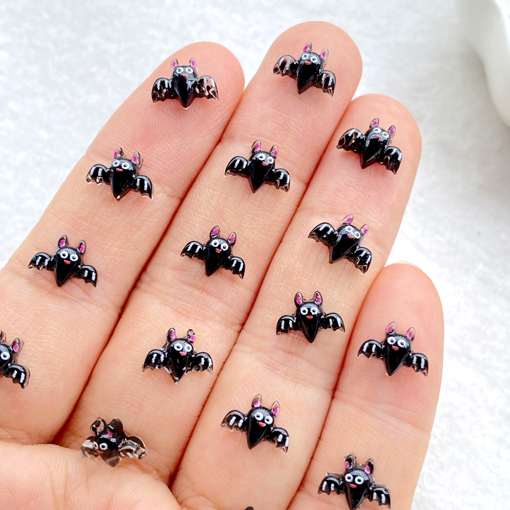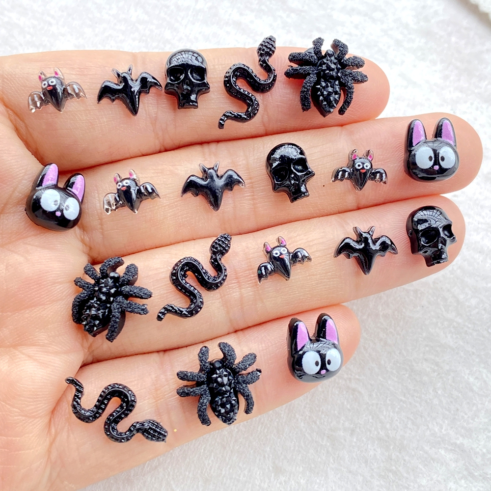 50 peças novo desenho animado de resina fofo aranha de Halloween, morcego, caveira, gato preto, morcego, parte traseira