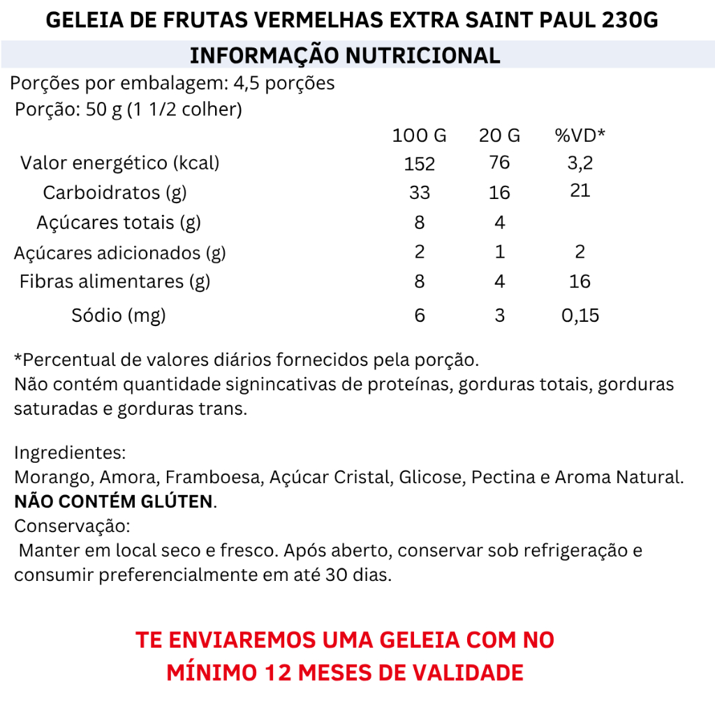 Kit Geleias de Frutas Pote de Vidro 230g - Frutas vermelhas, Tangerina e Damasco - Saint Paul