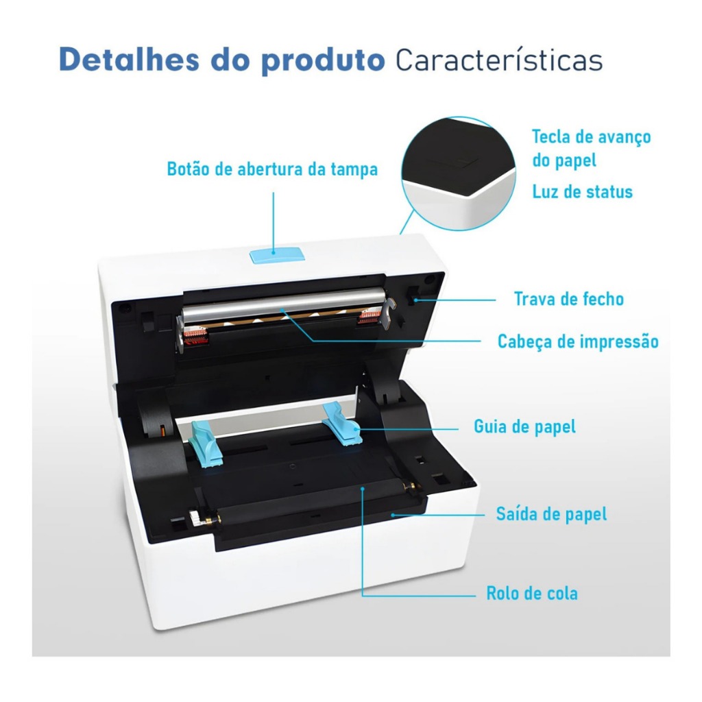Impressora Etiquetas Térmica Bluetooth Código Barras Ecommerce Frete Com Suporte Etiquetas