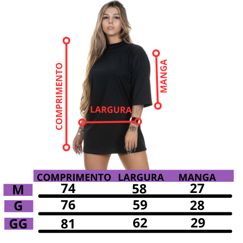 Camiseta Oversized Feminina -ESCOLHA SUA COR FAVORITA-
