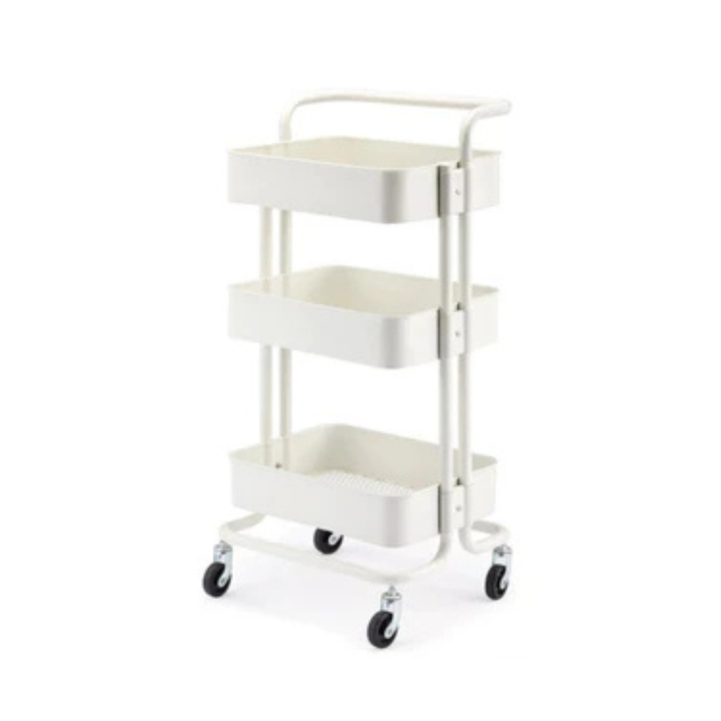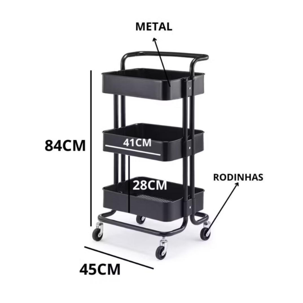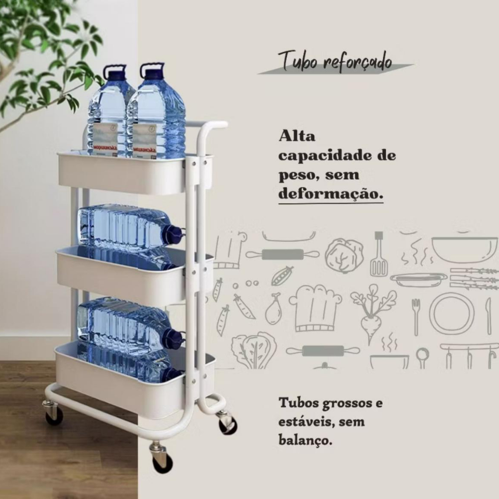 Carrinho Organizador Multiuso 3 Prateleiras e Alça Auxiliar Em Aço Com Rodinha