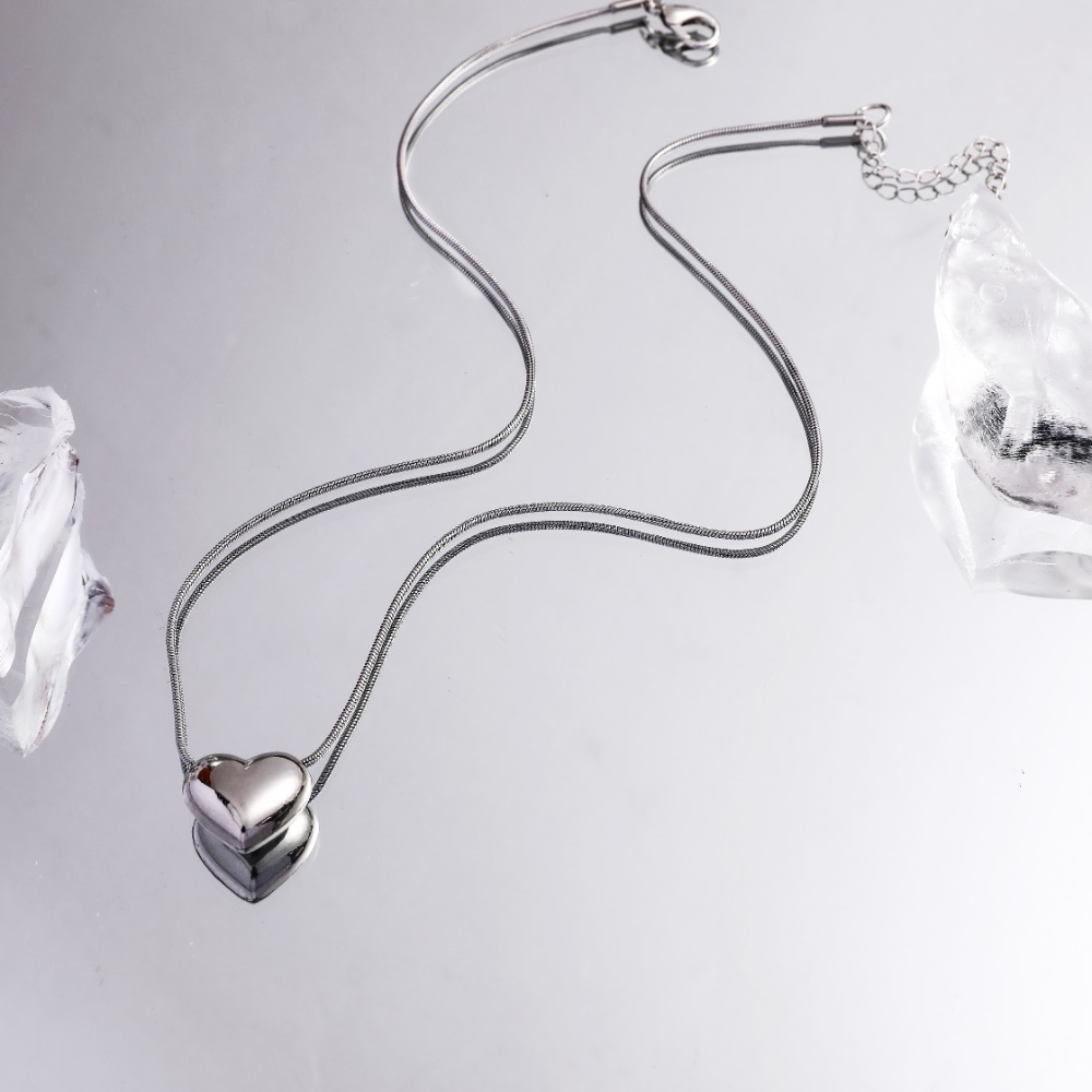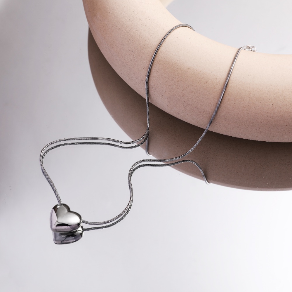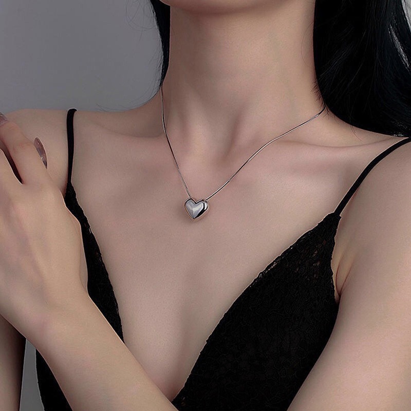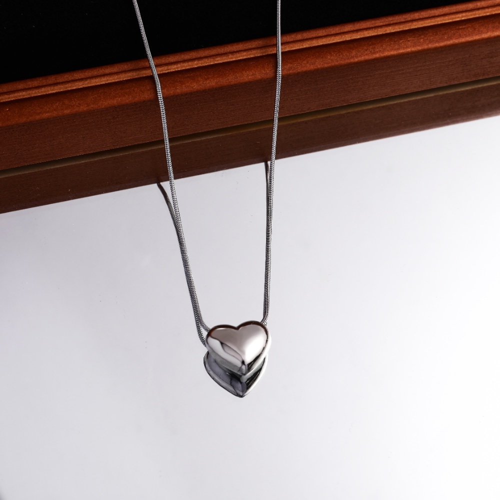 Colar Minimalista Com Pingente De Amor Prateado Para Mulheres – Joias Simples De Aço Inoxidável Uso Diário