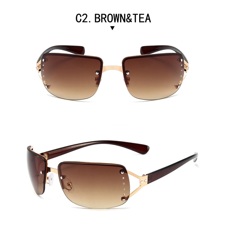 Diamante Y2K Óculos De Sol Feminino Sexy Sem Aro UV400 Estilo Ao Ar Livre Moda Tons