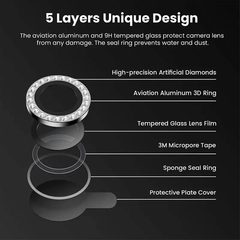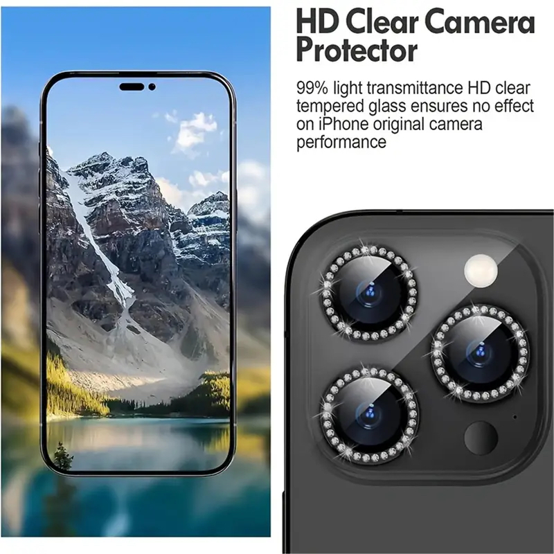 1 Conjunto De Protetor De Lente De Câmera De Telefone De Metal Estilo Diamante Para IPhone 15 14 13 12 11 Pro Max Series