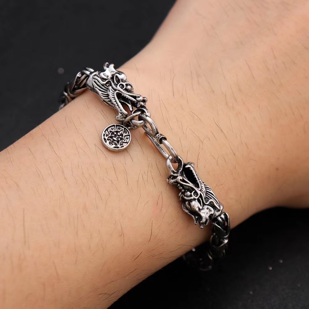 Pulseira Gótica De Cabeça Dupla Para Homens , Joias De Hip Hop De Aço Inoxidável , Presente De Halloween