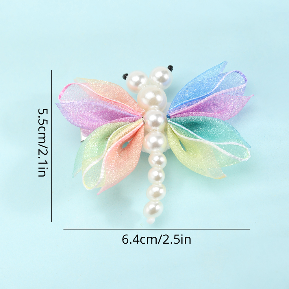 2pcs Clipes Coloridos Em Forma De Libélula De Cabelo Cabeça De Malha Pérola Acessórios De Jóias Para Meninas Bebês