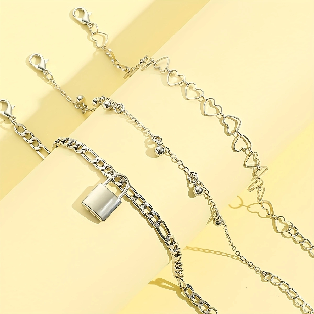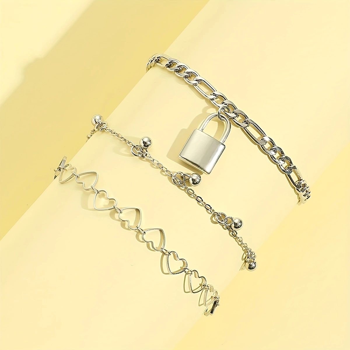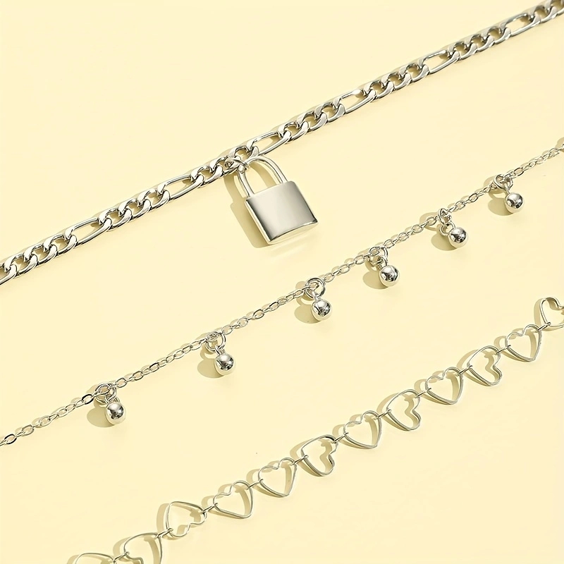Conjunto De Tornozeleira Com Pingente De 3 Peças Para Mulheres – Pulseira Ajustável Corrente Em Formato De Coração Praia