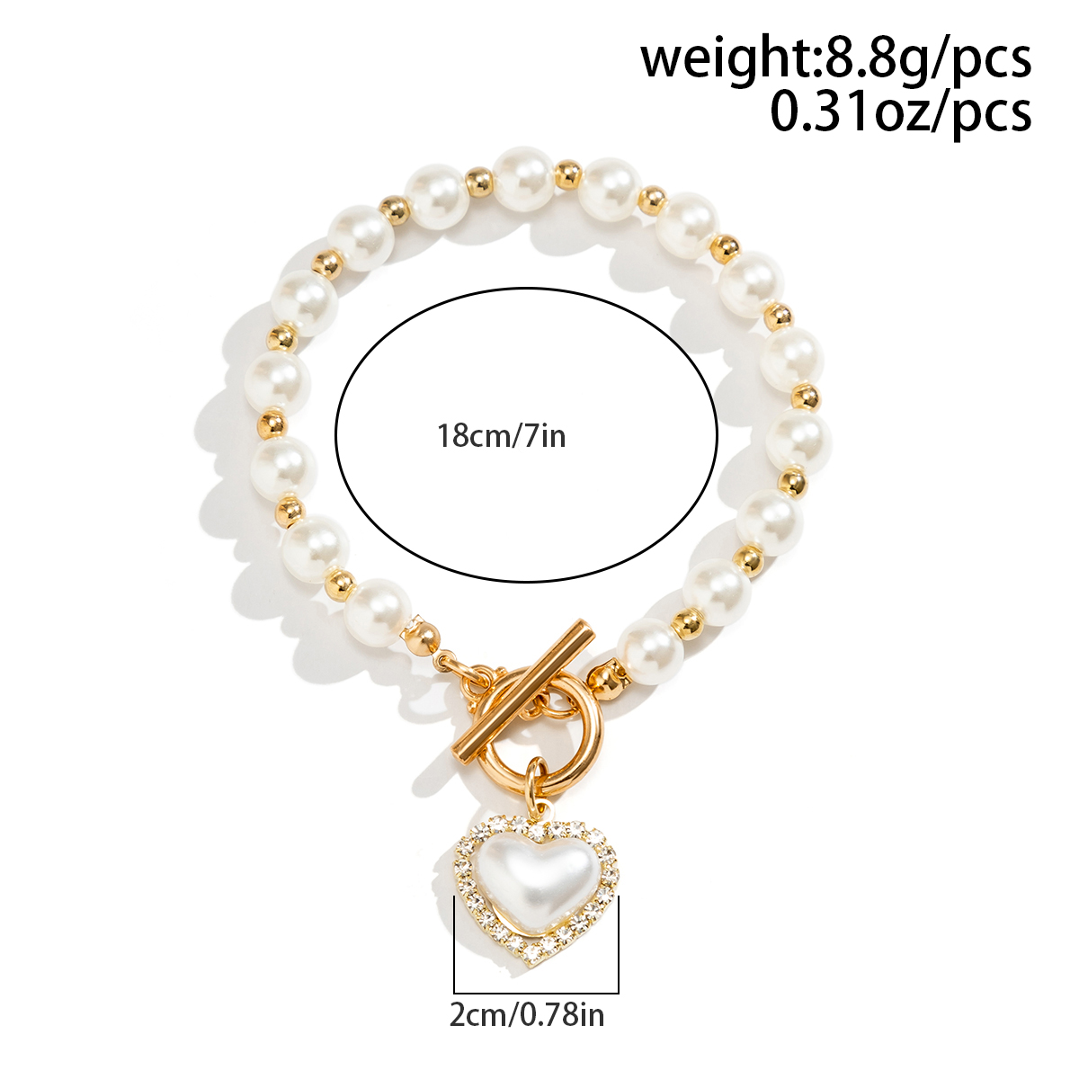 Imitação Pearl Beads Chain com Big Heart Pendant Acessórios No Pulso para Casamento 2023