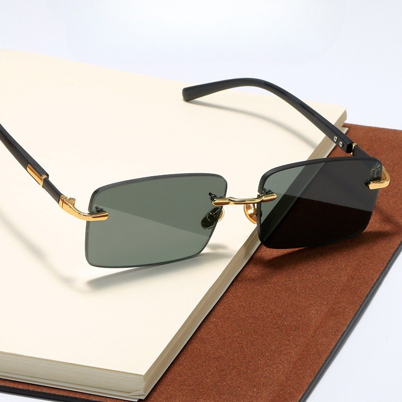 Óculos De Sol Sem Aro De Designer – Tons Retrô De Lentes De Corte UV400