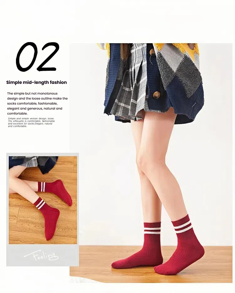 Meias Femininas Listradas Clássicas – Design Formal De Duas Linhas , Algodão Respirável | Desgaste Versátil Em Várias Ce