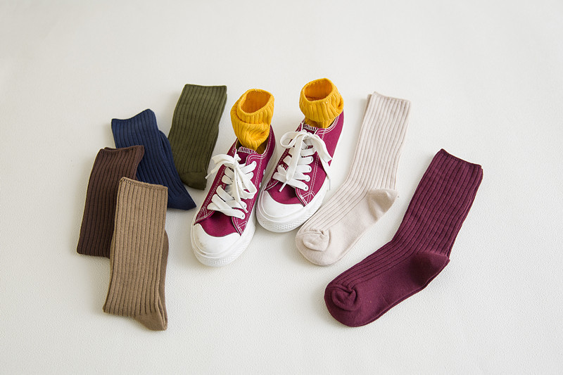 2025 Meias Femininas Modernas Com Nervuras – Empilháveis De Algodão Estilo Japonês Para Outono E Inverno , Medyas (Marro