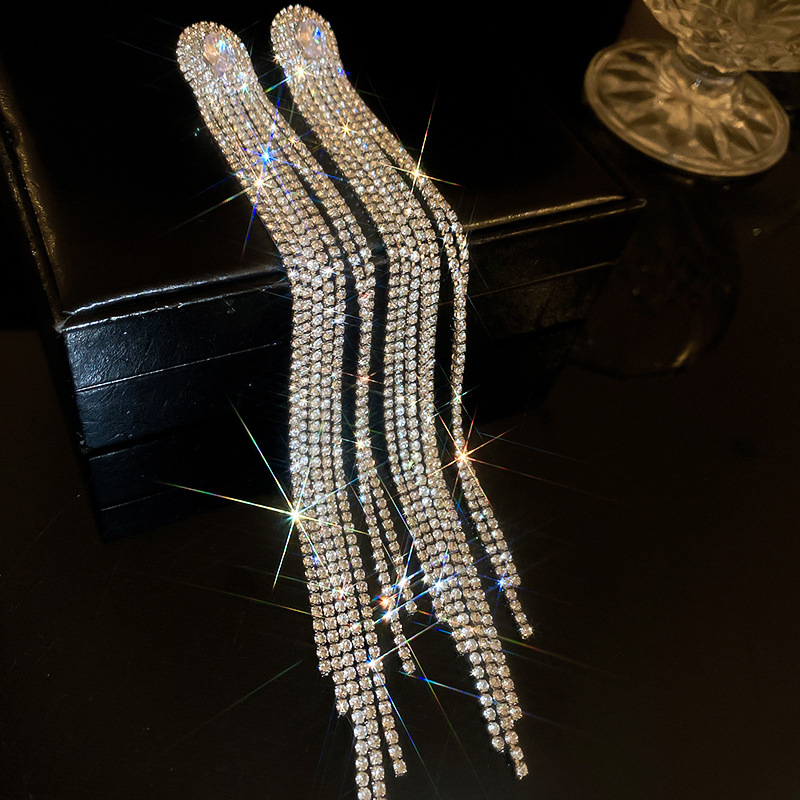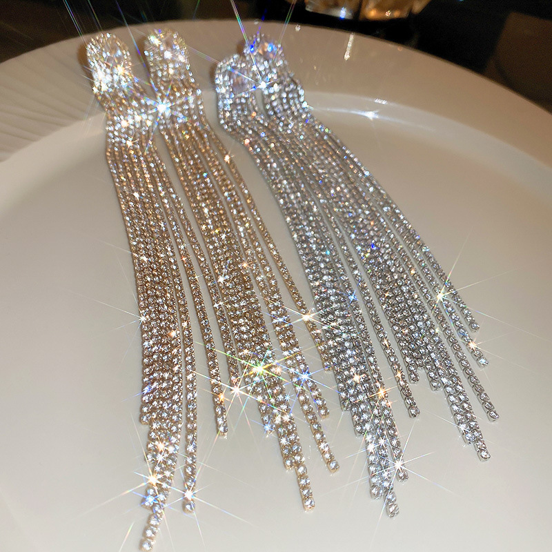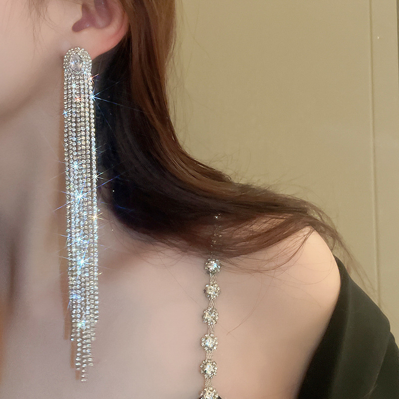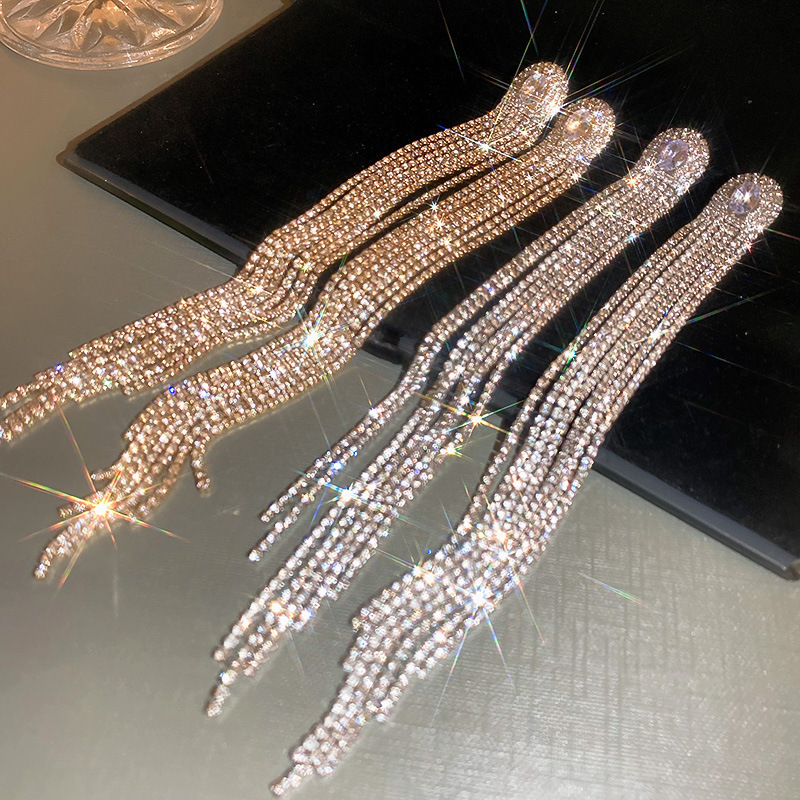 2 Pçs Conjunto De Agulha De Prata Diamante oval Zircão Brincos De Borla Longa Luz Europeia E Americana design De Luxo No