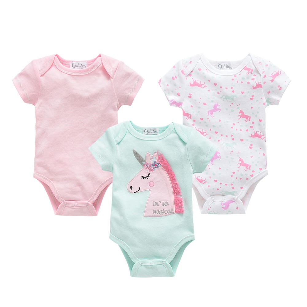 KavKas 3 Peças Macacão De Unicórnio Para Bebê Recém-Nascido Manga Curta Menino Menina Fofo , Conjunto De Roupas De