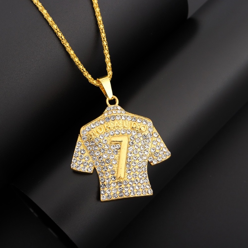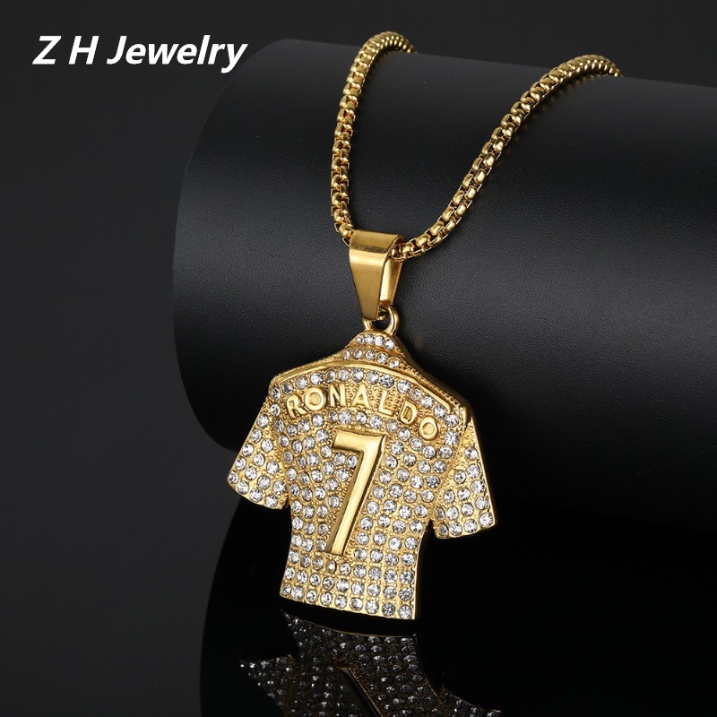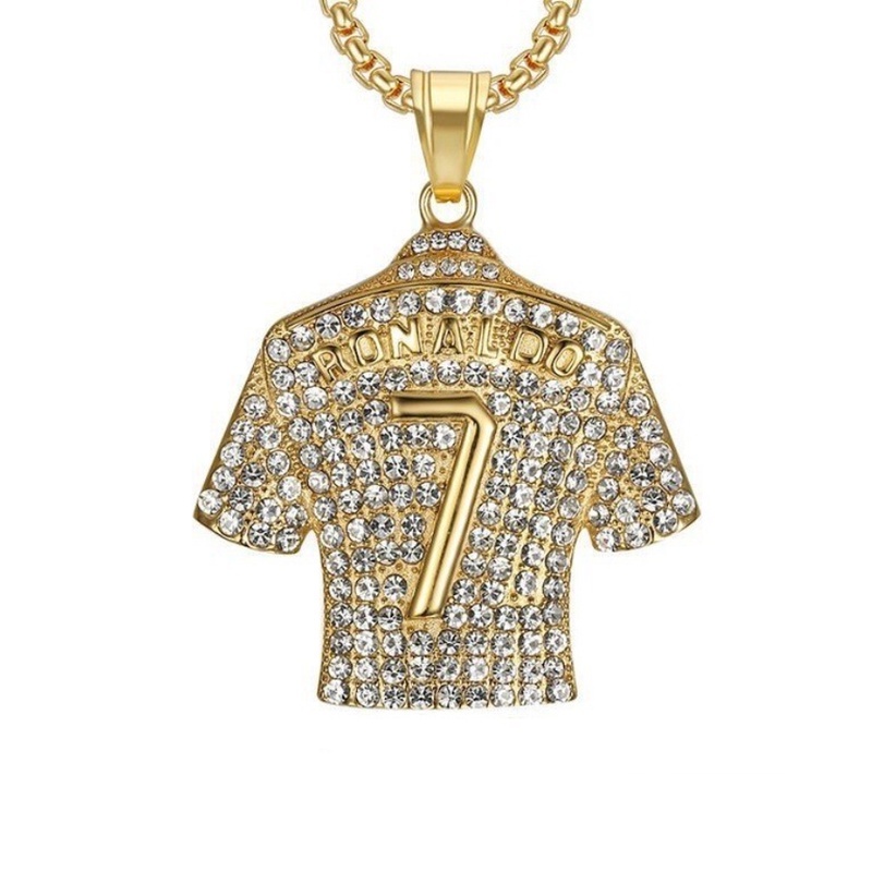 Colar Masculino Vintage Golden World Cup No . 7 Jersey Pingente Diamante Em Aço Inoxidável