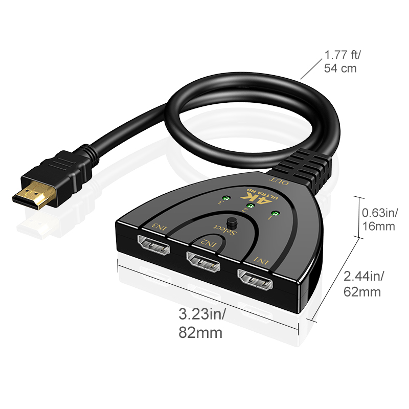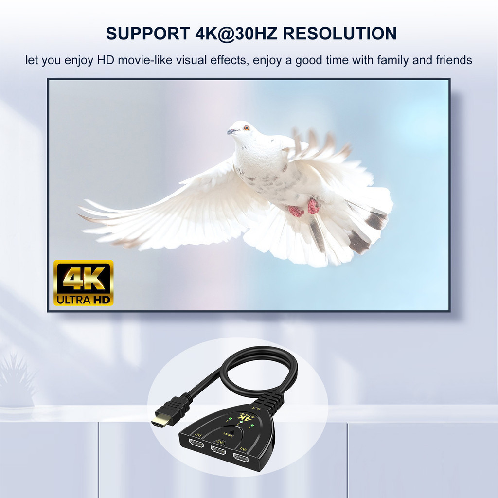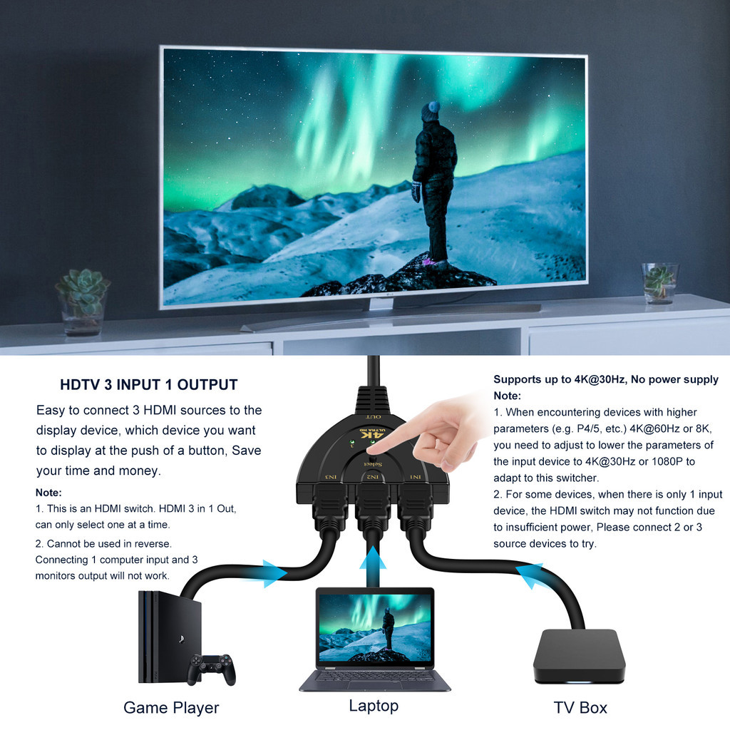 Switch HDMI De 3 Portas 4K 3 Em 1 Divisor De Saída Com Cabo Trançado Interruptor Automático Para PS5 PS4 Xbox TV PC