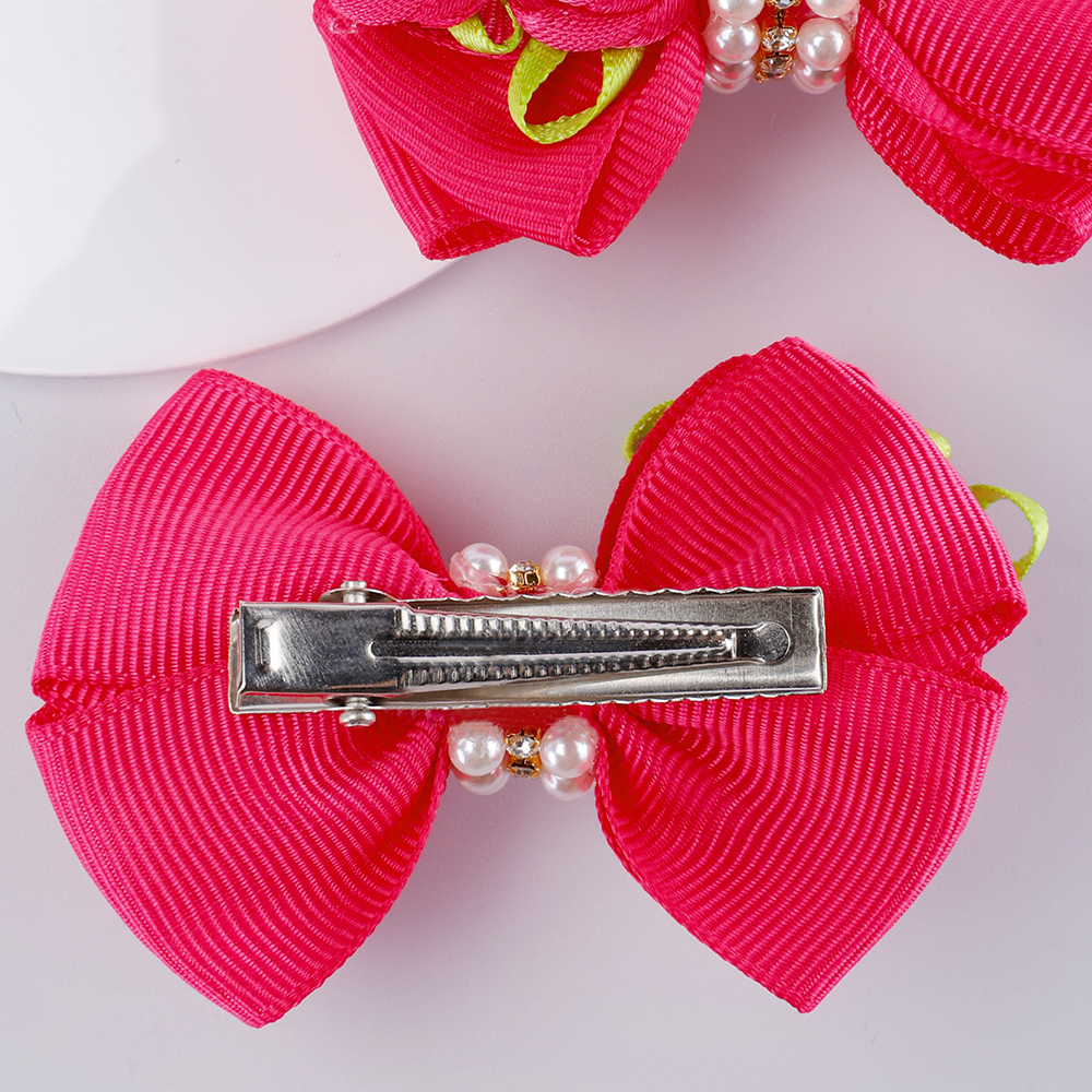 2Pcs Clipes De Cabelo Pearl Bowknot Com Grampos Rhinestone Classe Rose Para Crianças