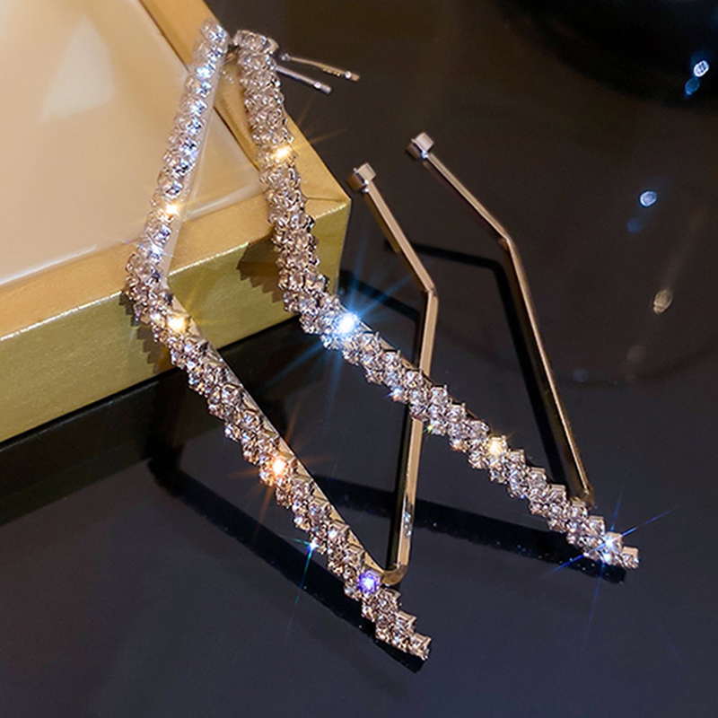 Brincos Geométricos Em Forma De Diamante Com Agulha De Prata Europeia E Americana , 2 Peças Para Simples Requintados Da