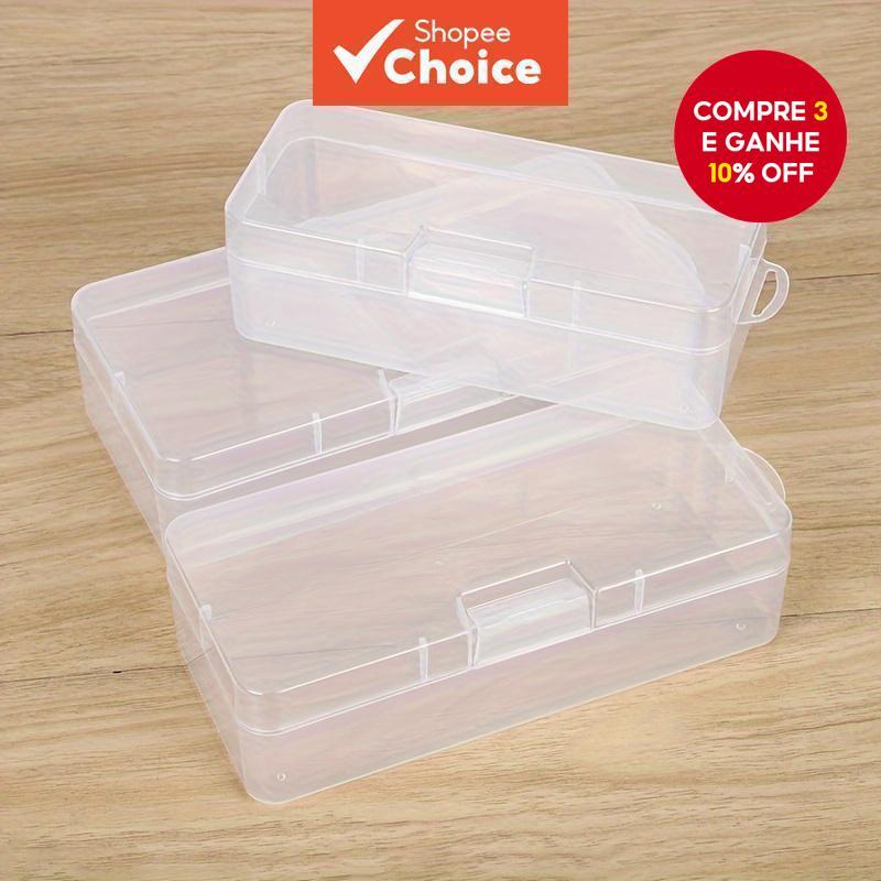 Caixa De Armazenamento De Plástico Transparente , Organizadora PP De Trava Única Para Artigos De Papelaria , Peças De Ha