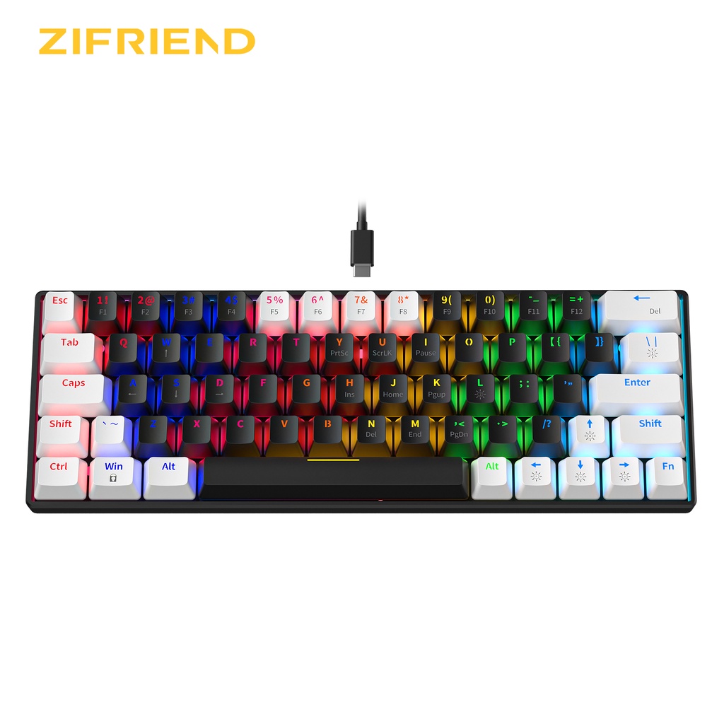 KA6406 Teclado Para Jogos Com Fio Preto Mecânico RGB Retroiluminado 63 Teclas 60 % Vermelho Azul Interruptor Pequeno Esc
