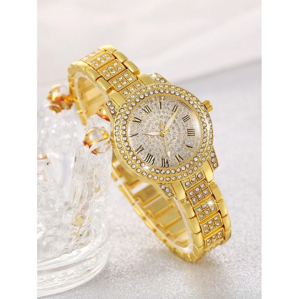 Conjunto De Relógio E Joias Com Mostrador Romano De Diamante , Pulseira De Aço De 6 Peças , Presente De Formatura De Ani
