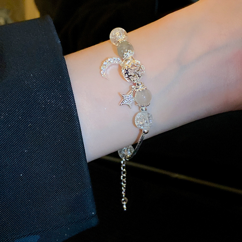 1 Peça Pulseira De Contas De Cristal Estrela E Lua De Zircônia Design De Moda Elegante Para Estilo Chique