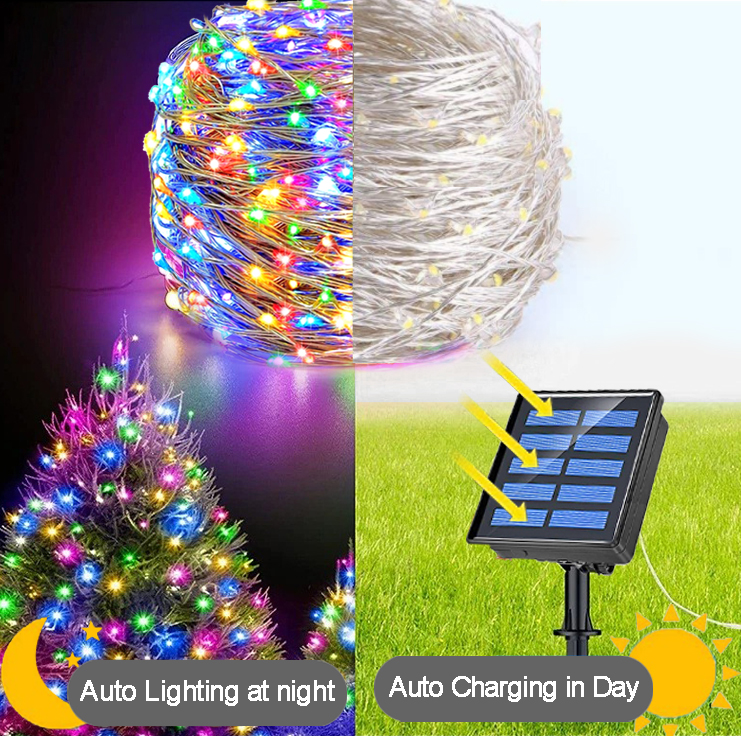 103M/52M/42M/32M/22M Luzes Solares De Fada De Cordas À Prova D'água 8 Modos Para Árvore De Jardim Christmas Raya Decor
