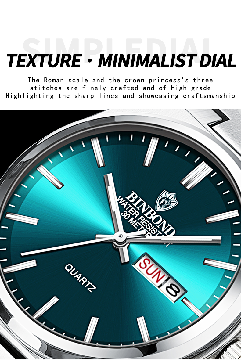 BINBOND Luxury Business Relógio Com Calendário À Prova D'água Para Homens Relo