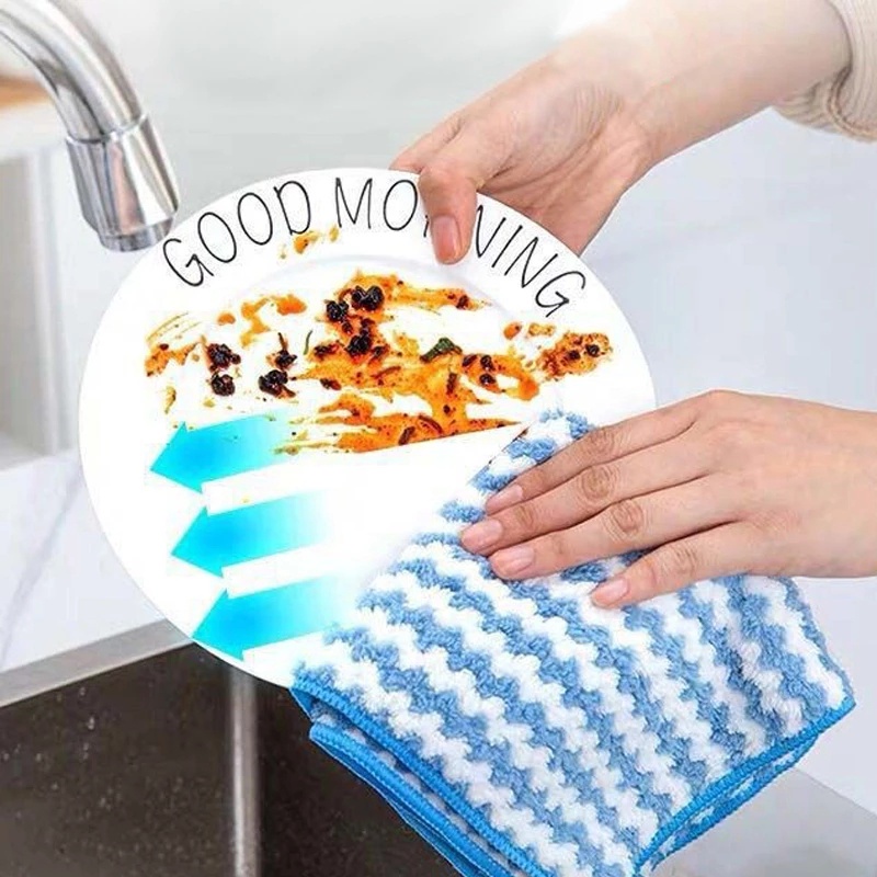 Toalha De Limpeza De Cozinha Absorvente De Microfibra Riscada Espessa Panos Óleo Toalhas De Prato Doméstica