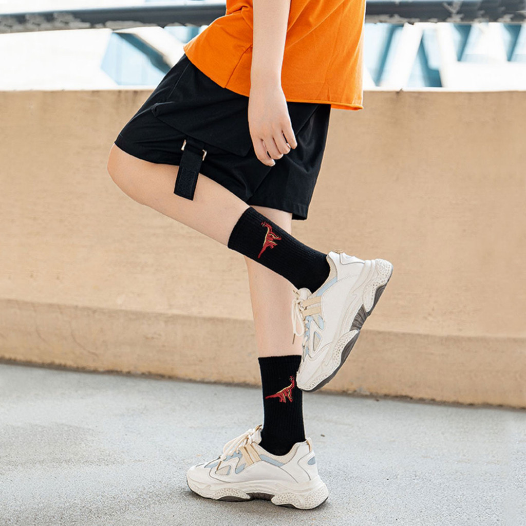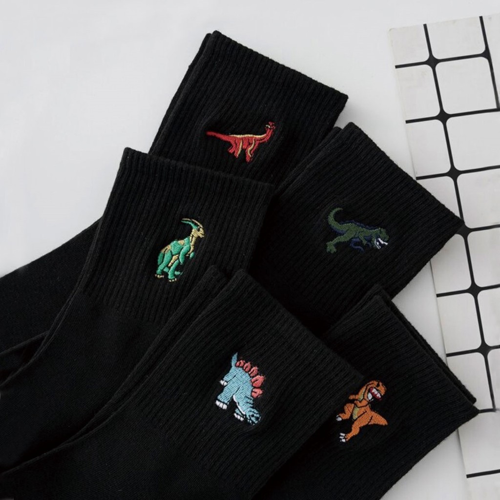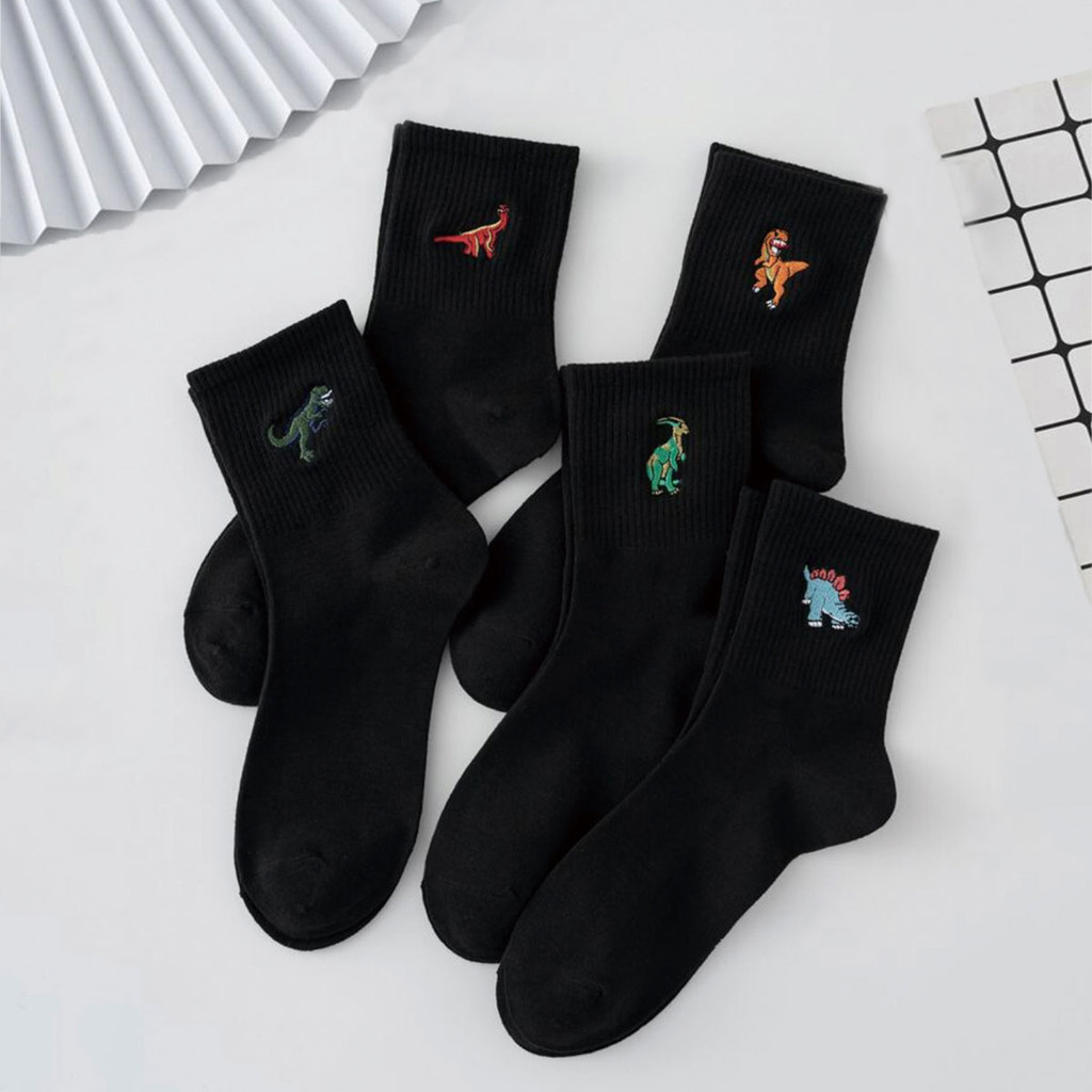 5 pares masculinos desenhos animados moda bonito engraçado dinossauro impressão série esportes meias da moda