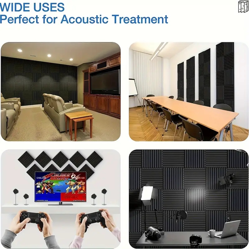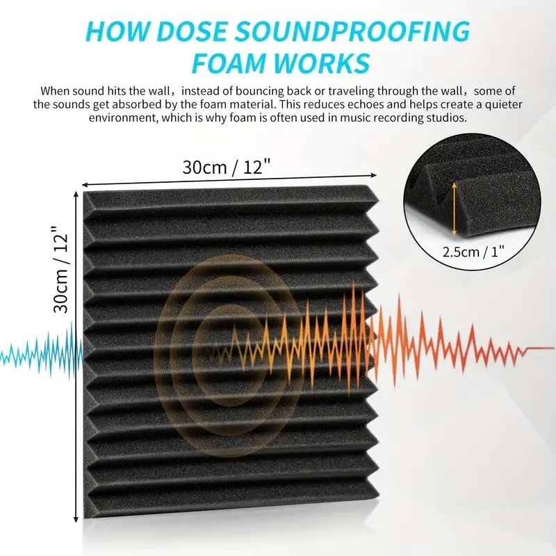 10pcs Studio Espuma Acústica Painéis De Parede À Prova De Som Cunhas Tratamento De Absorção Esponja 1'X12 .