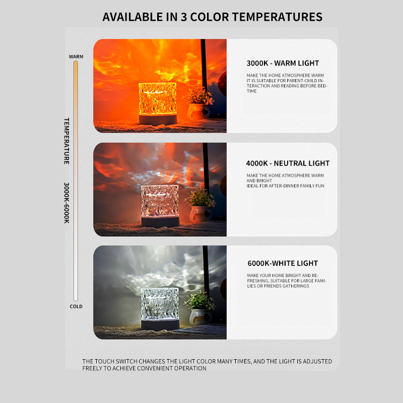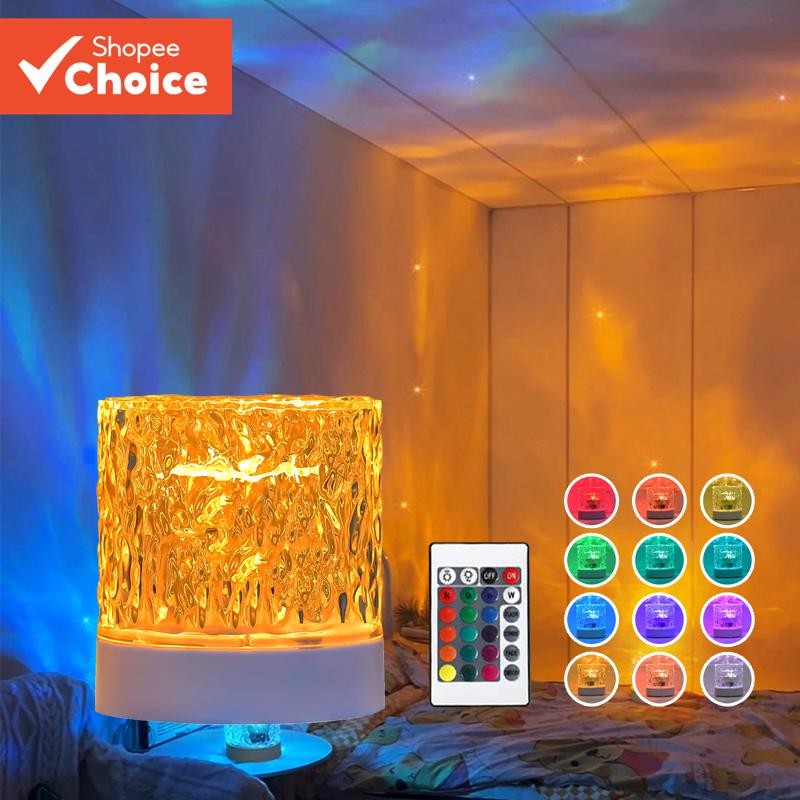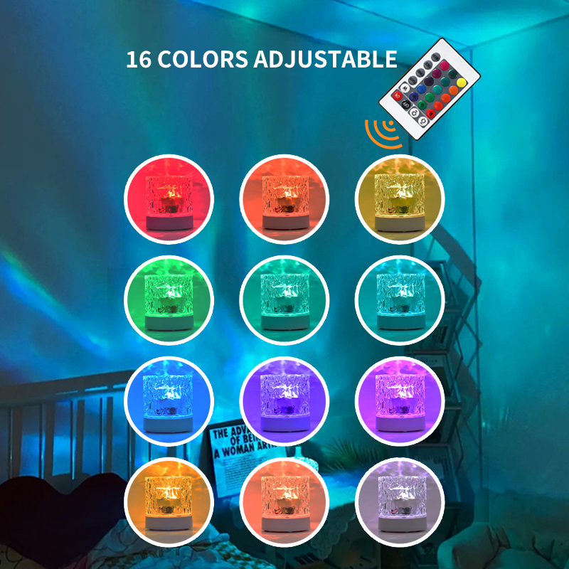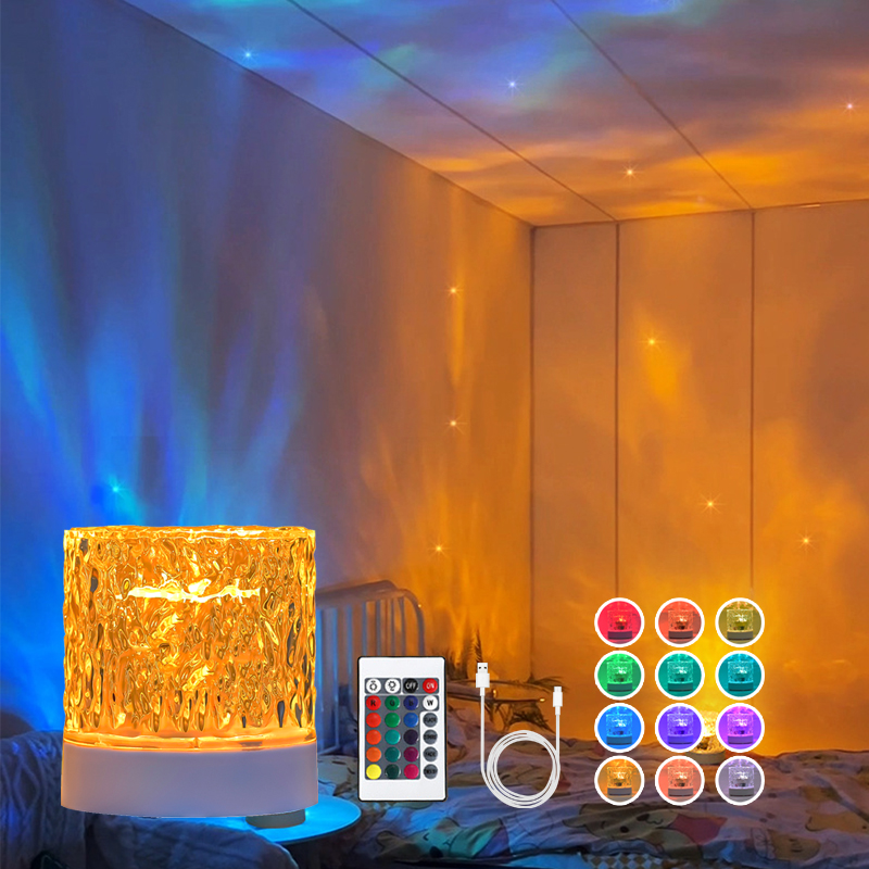 Ocean Crystal Night Light-Projetor De Ondulação De Água Giratório Automático Com 16 Cores Para Quarto E Sala De Jogos