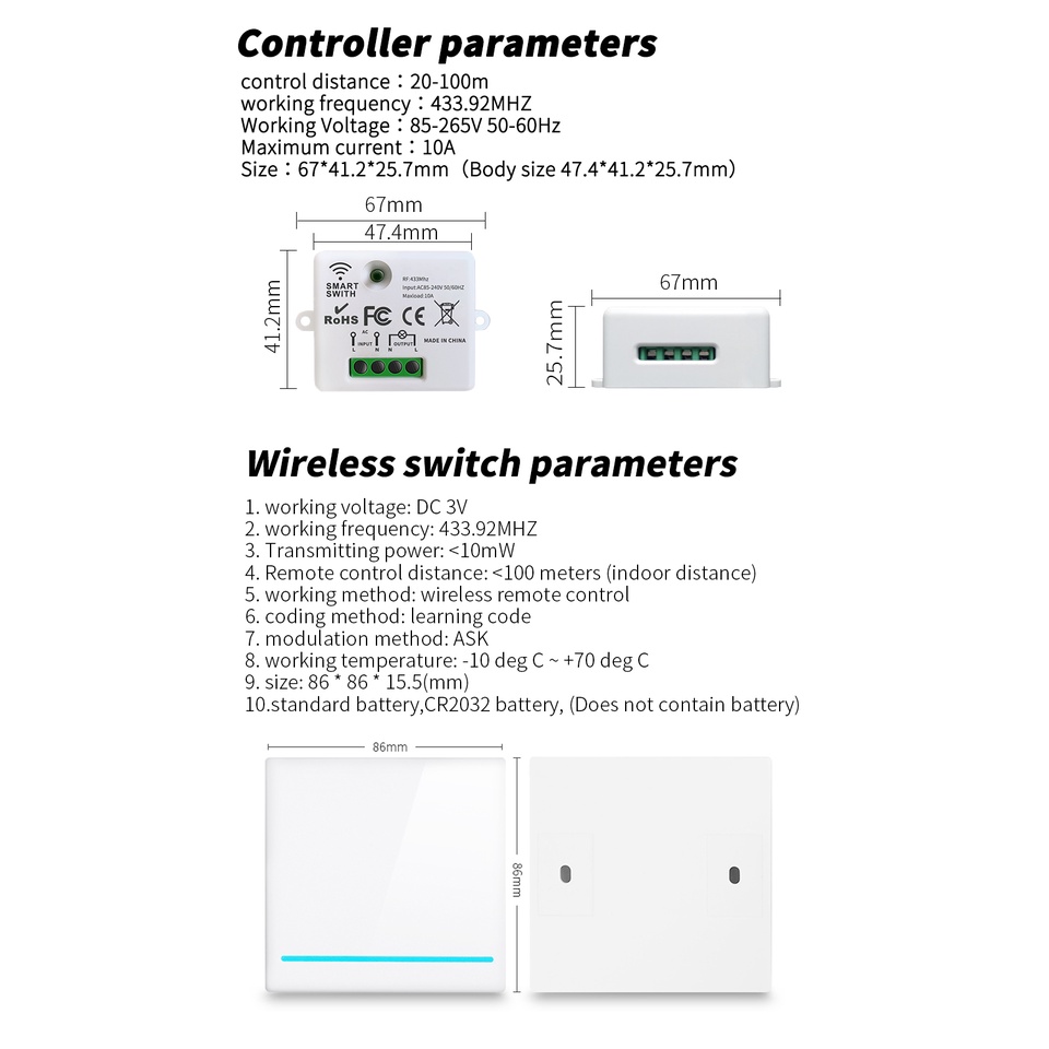 Interruptor Sem Fio RF 433Mhz Inteligente De Controle Remoto