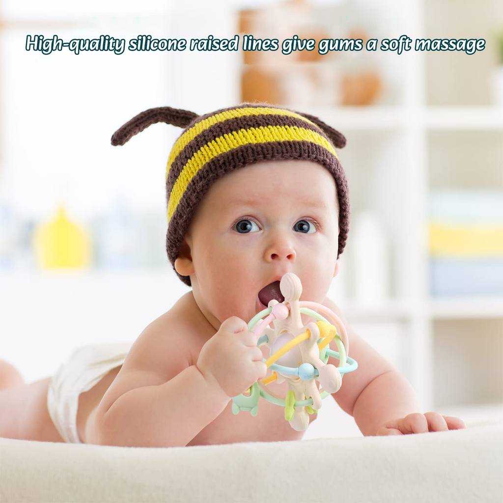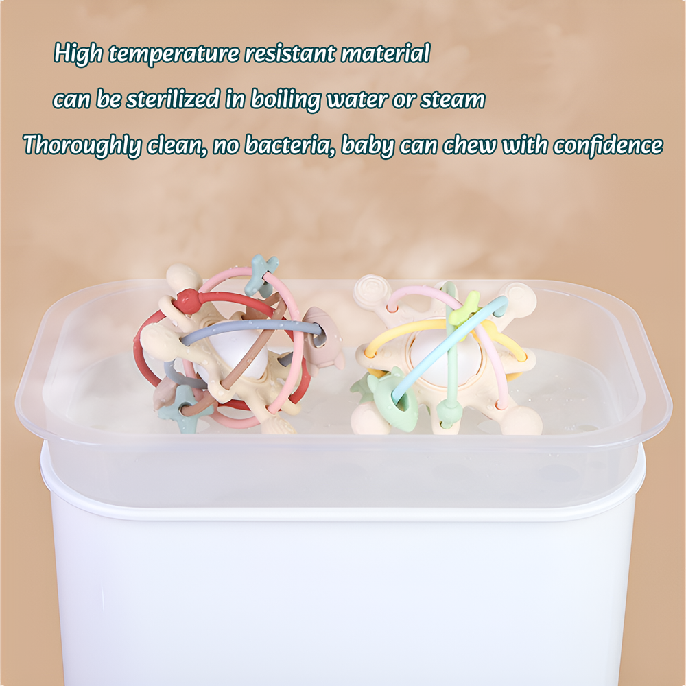 Rattle & Sensory Teether Bed Bell Silicone para Bebês Desenvolvimento 0-36 Meses